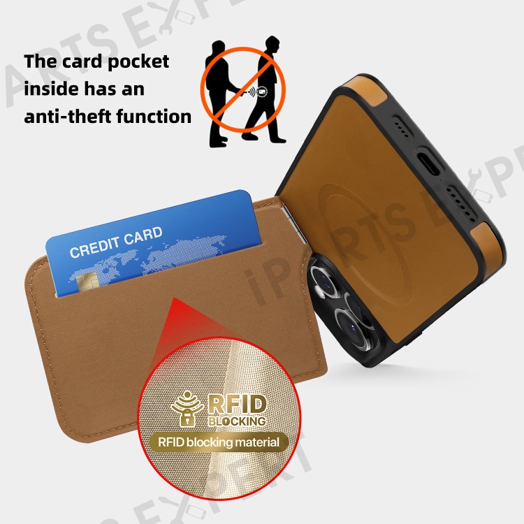 - RFID Blocking Protection: The card pocket is equipped with RFID blocking material, providing an anti-theft function to keep your cards safe from unauthorized scanning