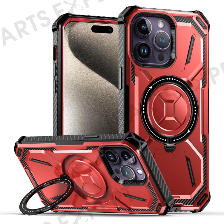 For iPhone 15 Pro Magnetic Phone Case Kickstand Shock-Absorption Cover - Red