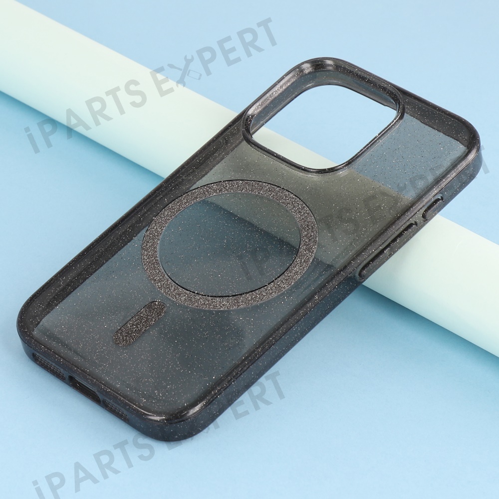 For iPhone 15 Pro Max Case Compatible with MagSafe 2.0mm PC + TPU Glitter Phone Cover - Black