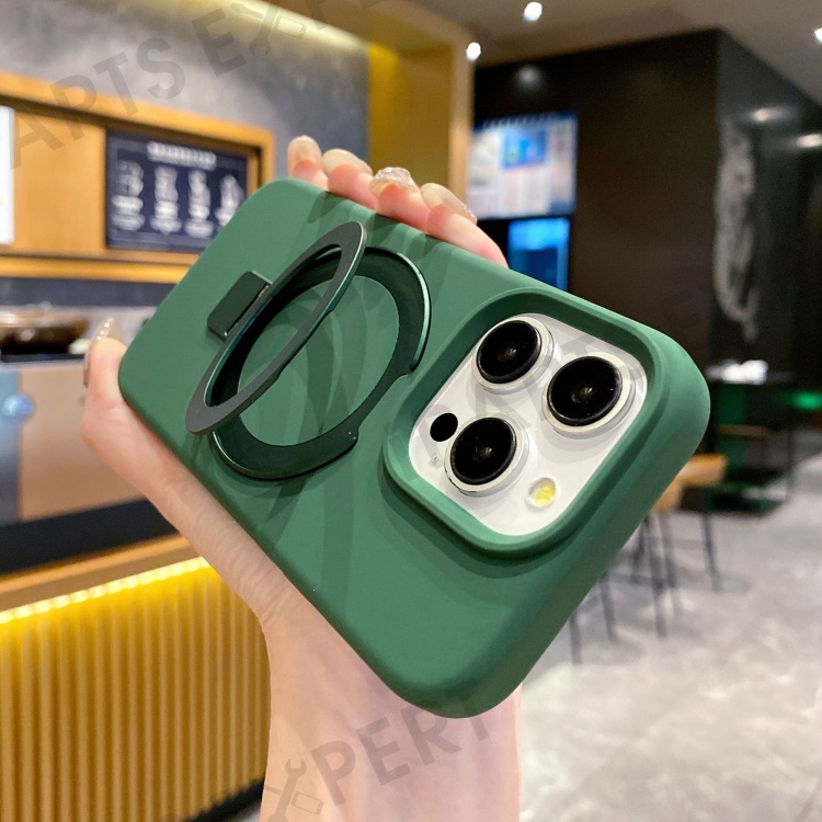 For iPhone 15 Pro Max Case Compatible with MagSafe Kickstand Liquid Silicone Phone Anti-Fingerprints - Army Green