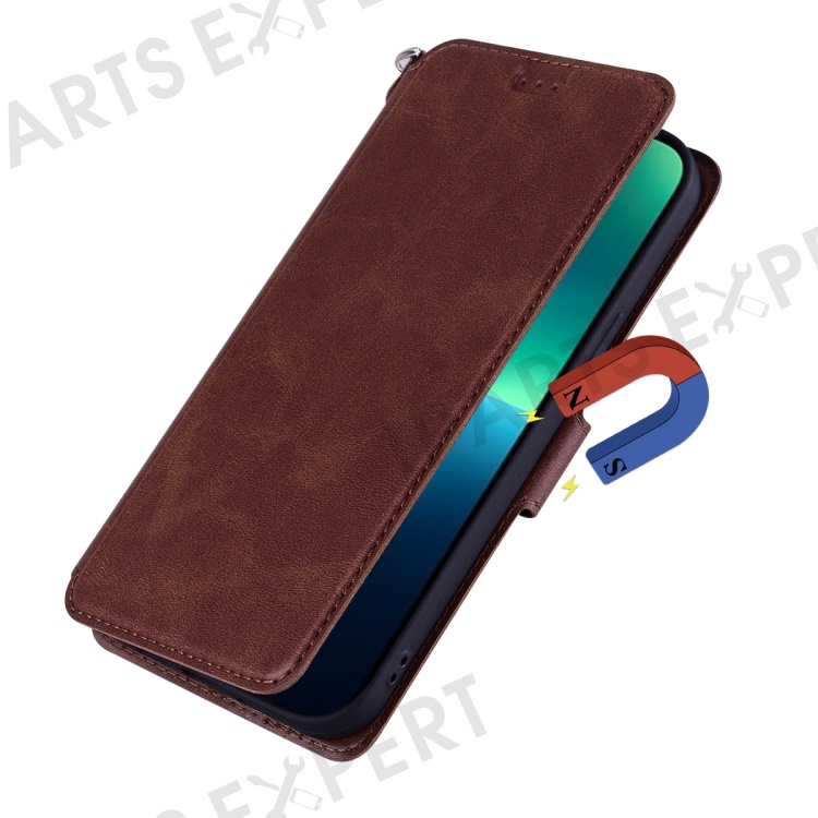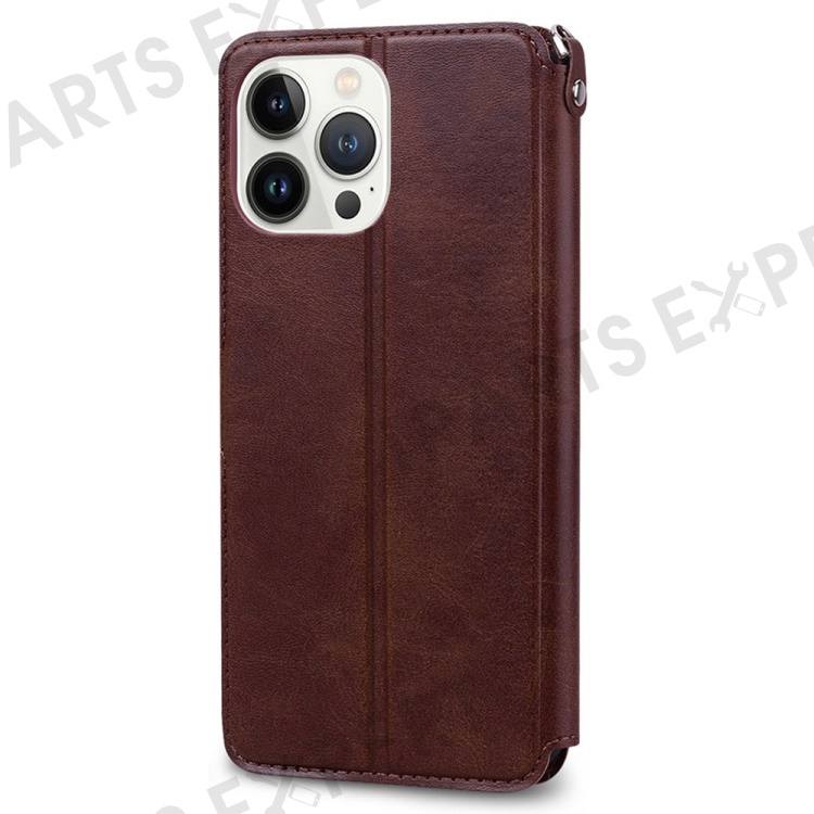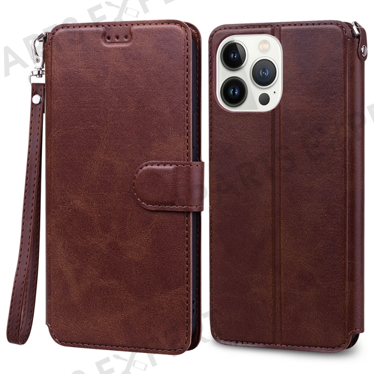 For iPhone 15 Pro Max Case PU Leather Flip Stand Wallet Phone Cover with Wrist Strap - Brown