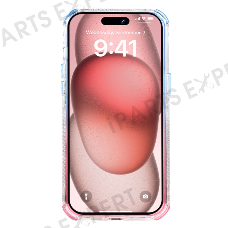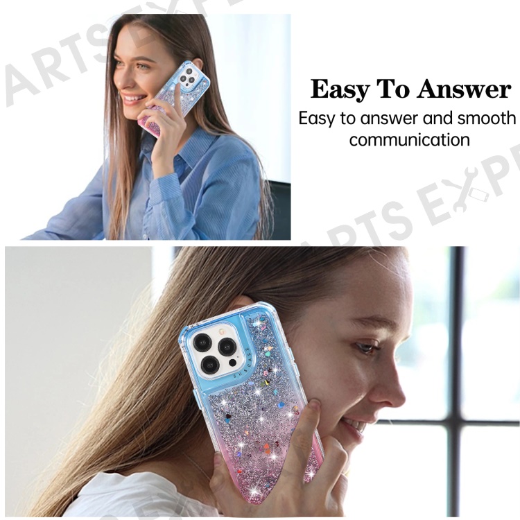 For iPhone 15 Pro Max Case Quicksand Liquid Floating Anti Slip TPU+PC Smart Phone Cover - Blue+Pink