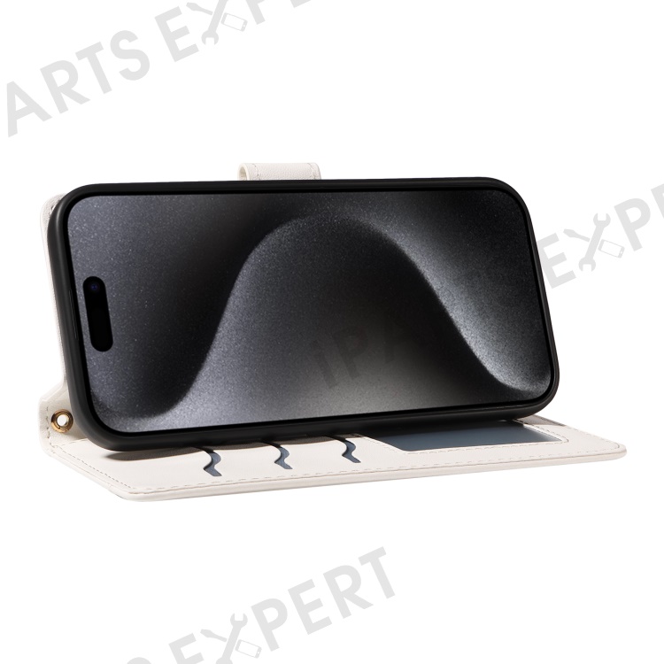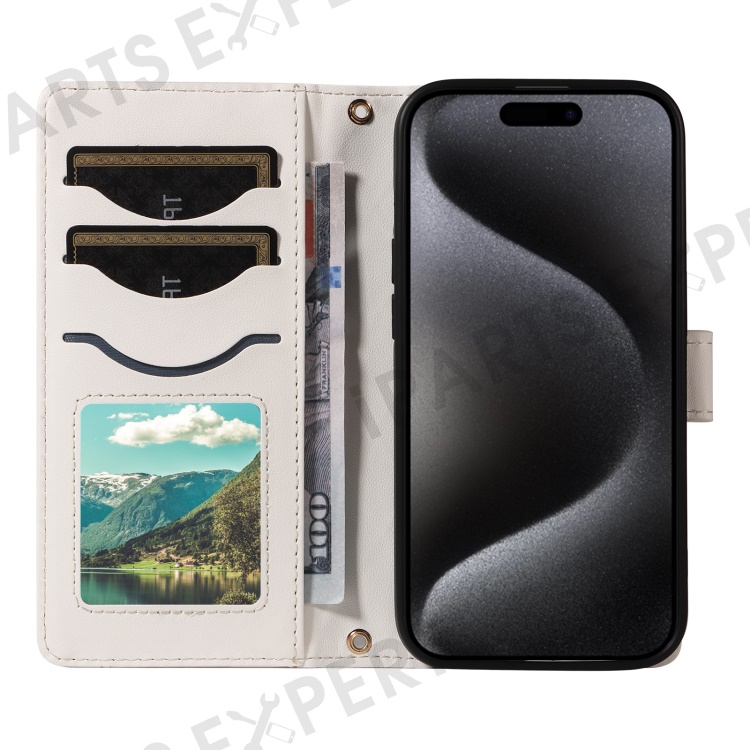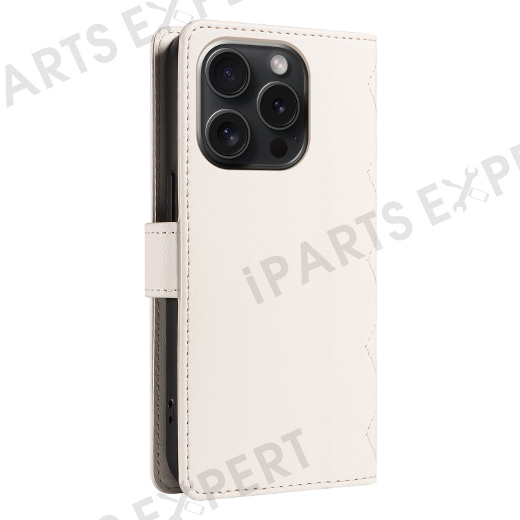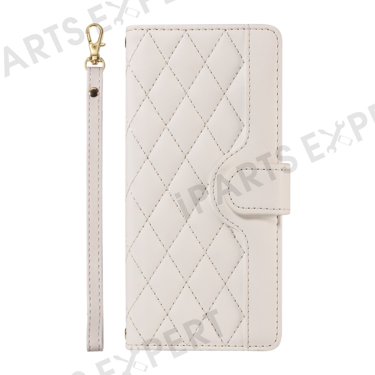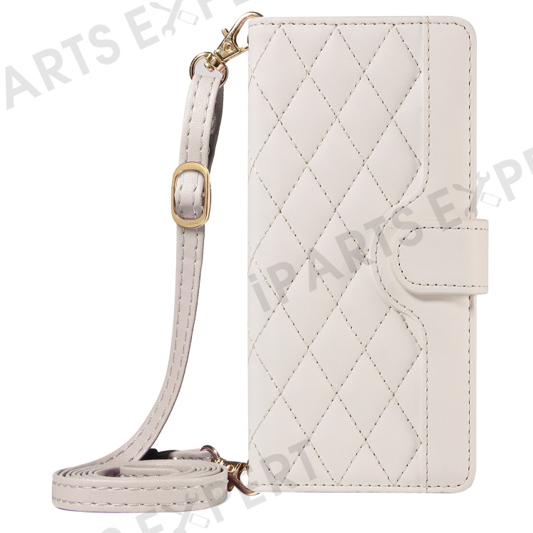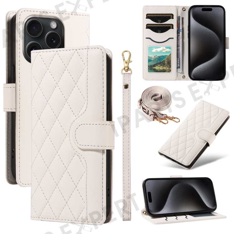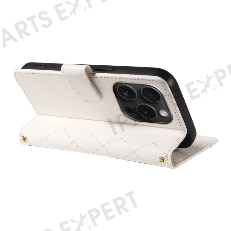 For iPhone 15 Pro Max Crossbody Case Stand Quilted Leather Protective Phone Cover - White