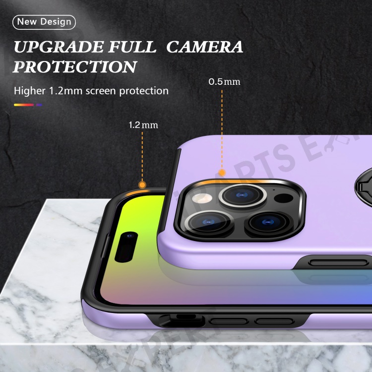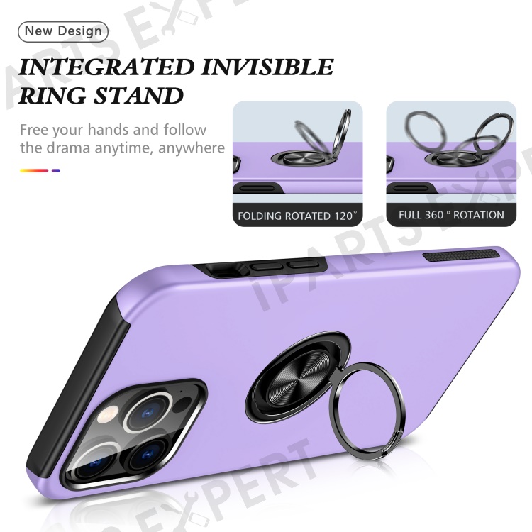 For iPhone 15 Pro Max Ring Holder Kickstand Phone Cover PC+TPU Anti-drop Back Case - Purple