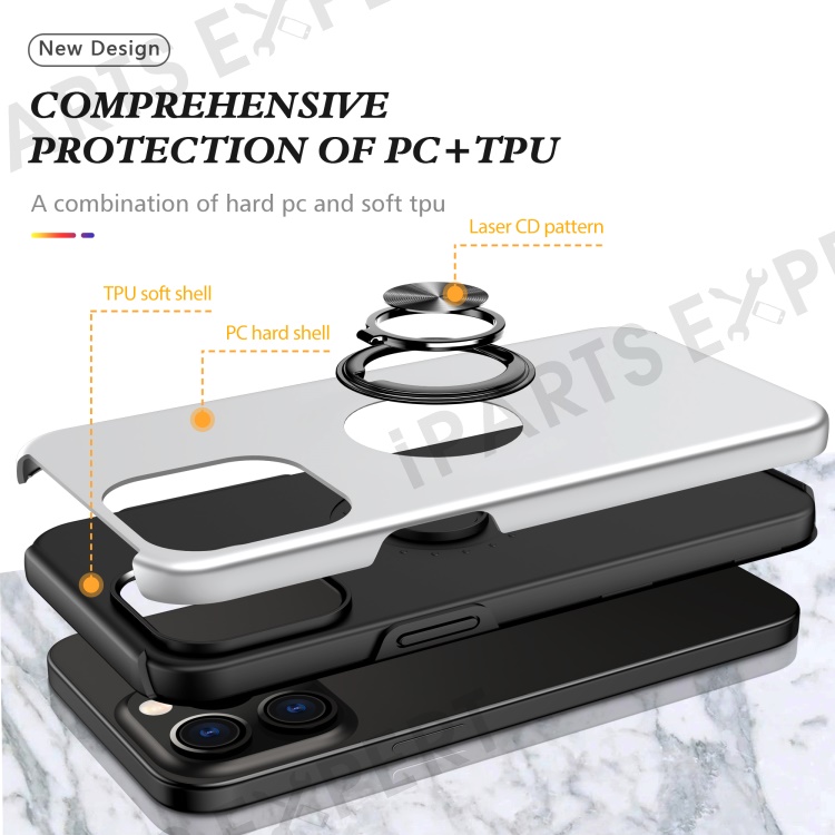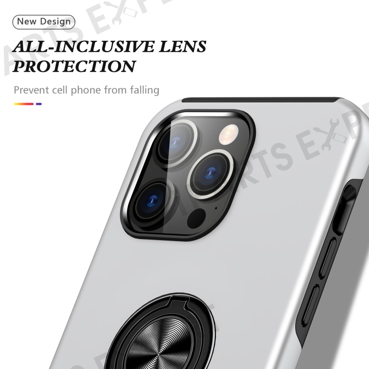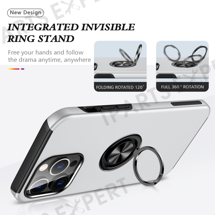 For iPhone 15 Pro Max Ring Holder Kickstand Phone Cover PC+TPU Anti-drop Back Case - Silver
