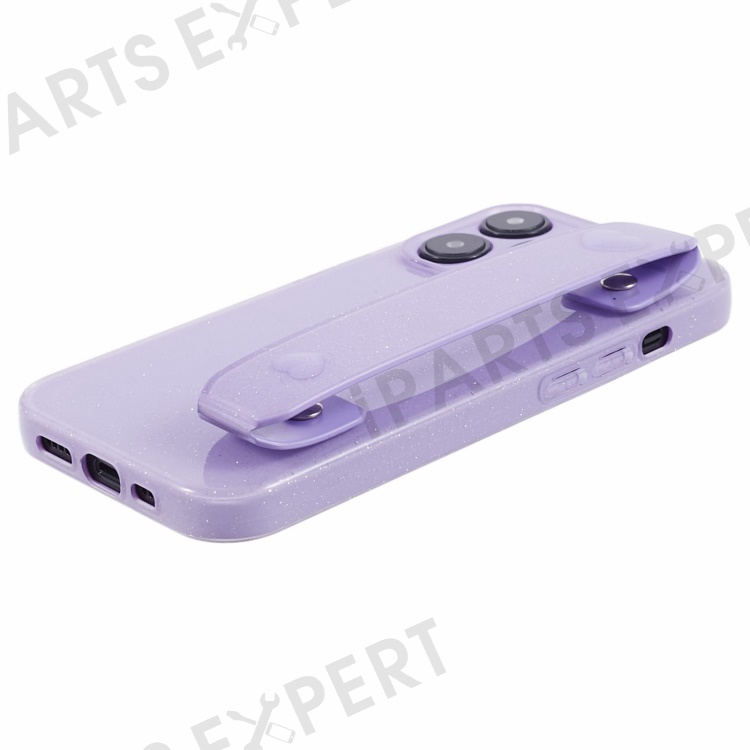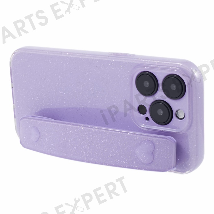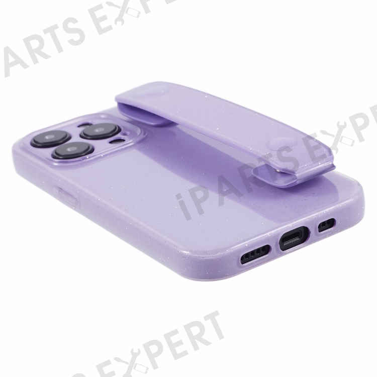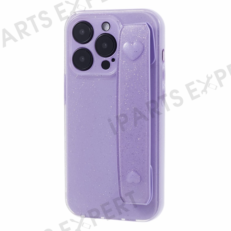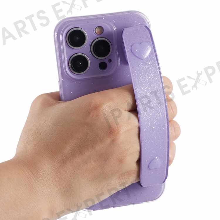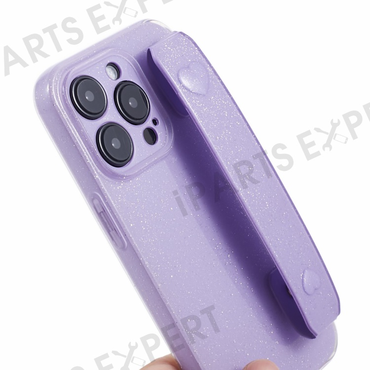 For iPhone 15 Pro Phone Case Wristband Kickstand Glittery TPU Cover - Purple