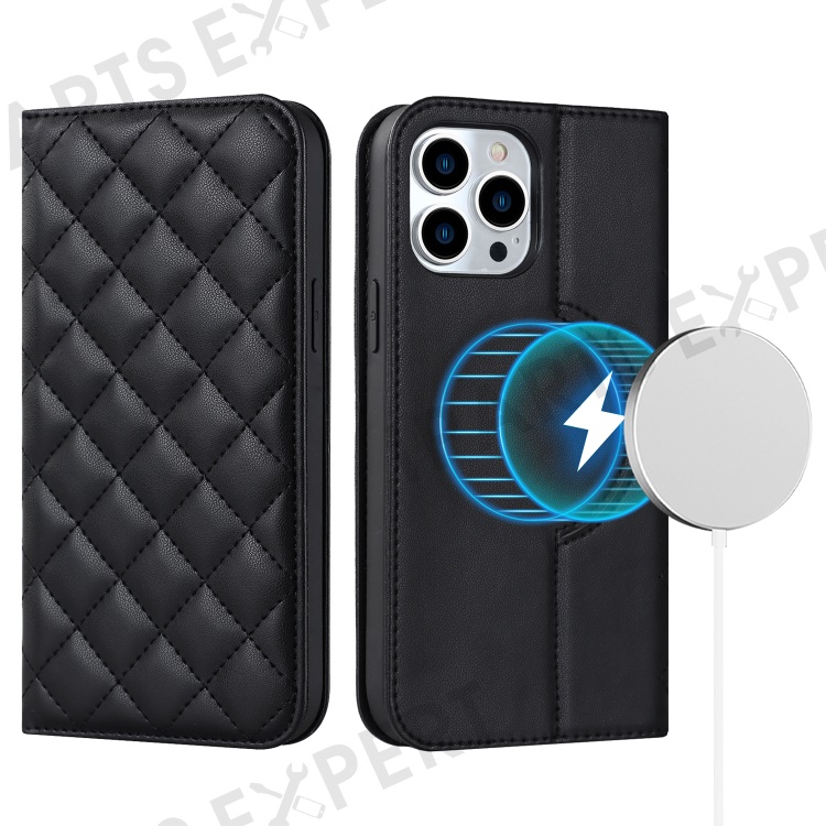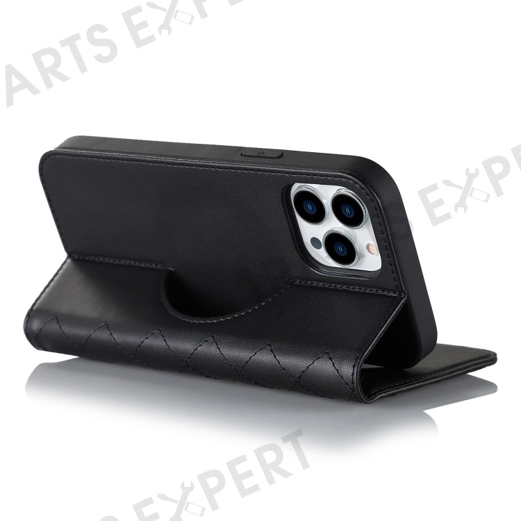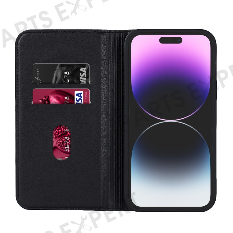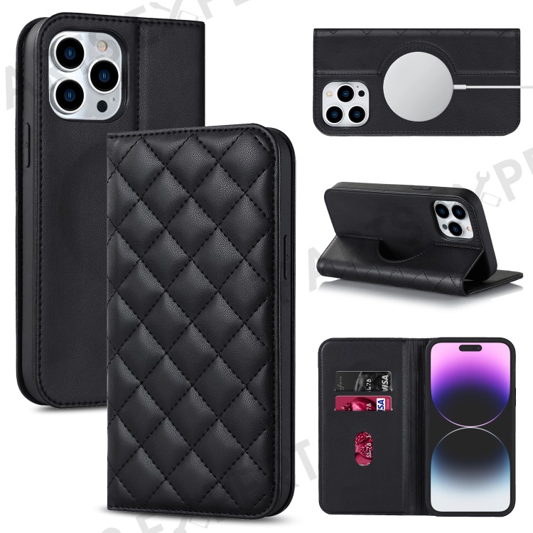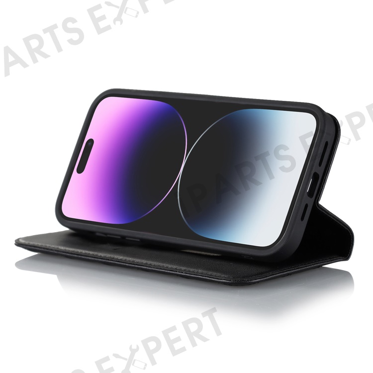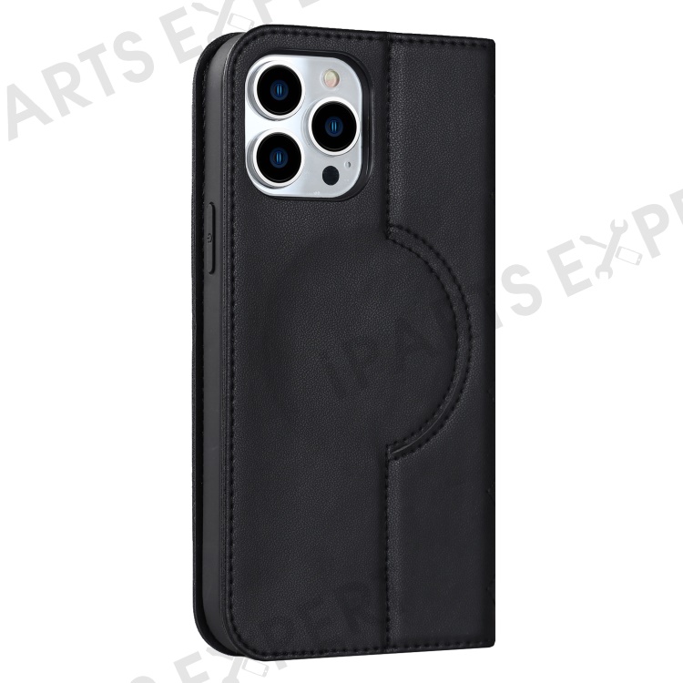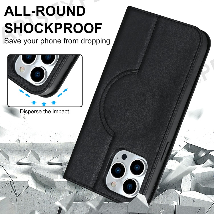 For iPhone 15 Pro PU Leather Stand Cover Card Holder RFID Blocking Phone Case Compatible with Magsafe - Black