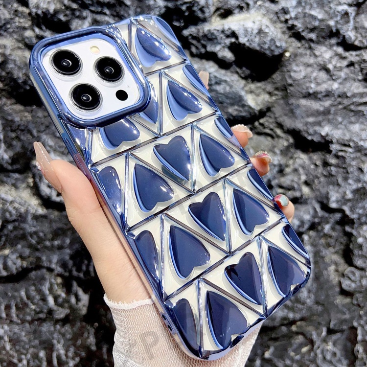 For iPhone 15 Pro TPU Phone Case Electroplating 3D Love Heart Shape Cover - Blue