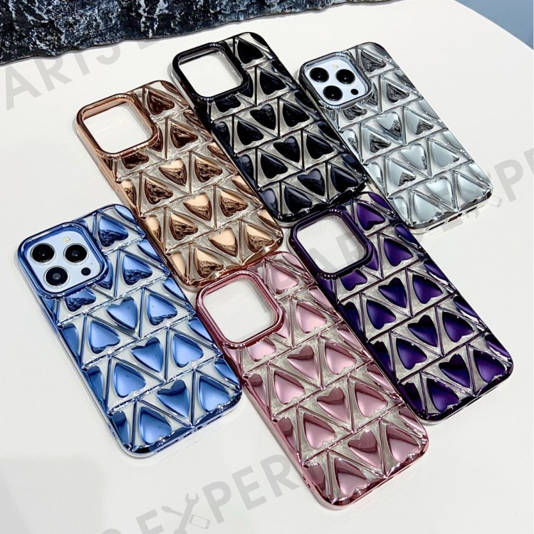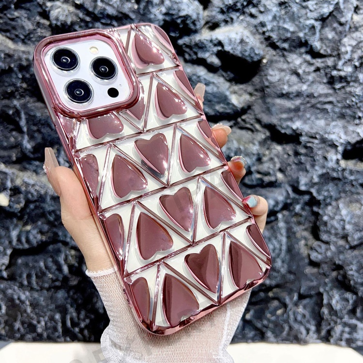 For iPhone 15 Pro TPU Phone Case Electroplating 3D Love Heart Shape Cover - Rose Gold