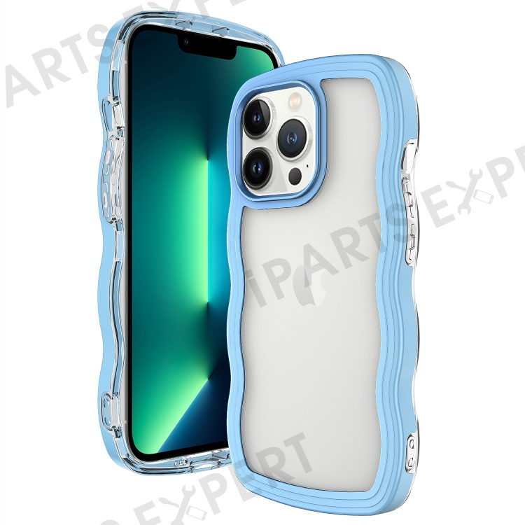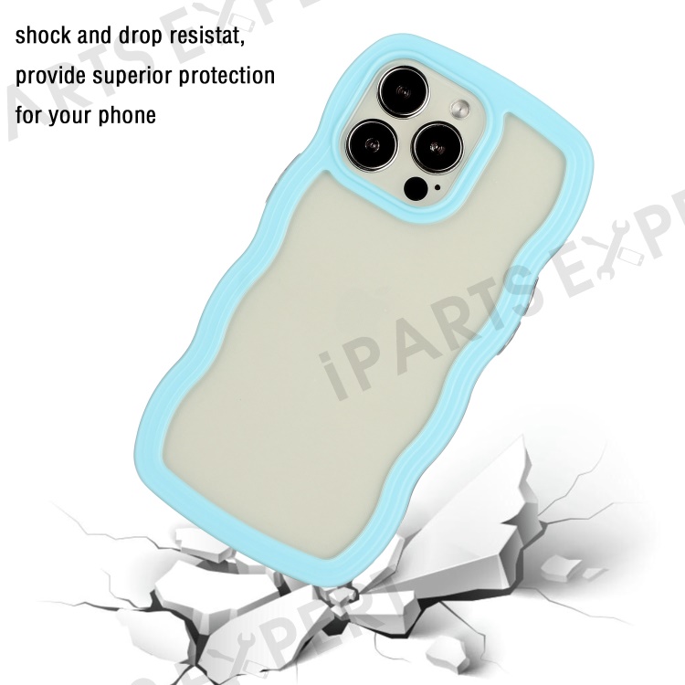 For iPhone 15 Pro Transparent Back Cover Wave Edge PC + TPU Detachable Color Frame Anti-scratch Phone Case - Blue
