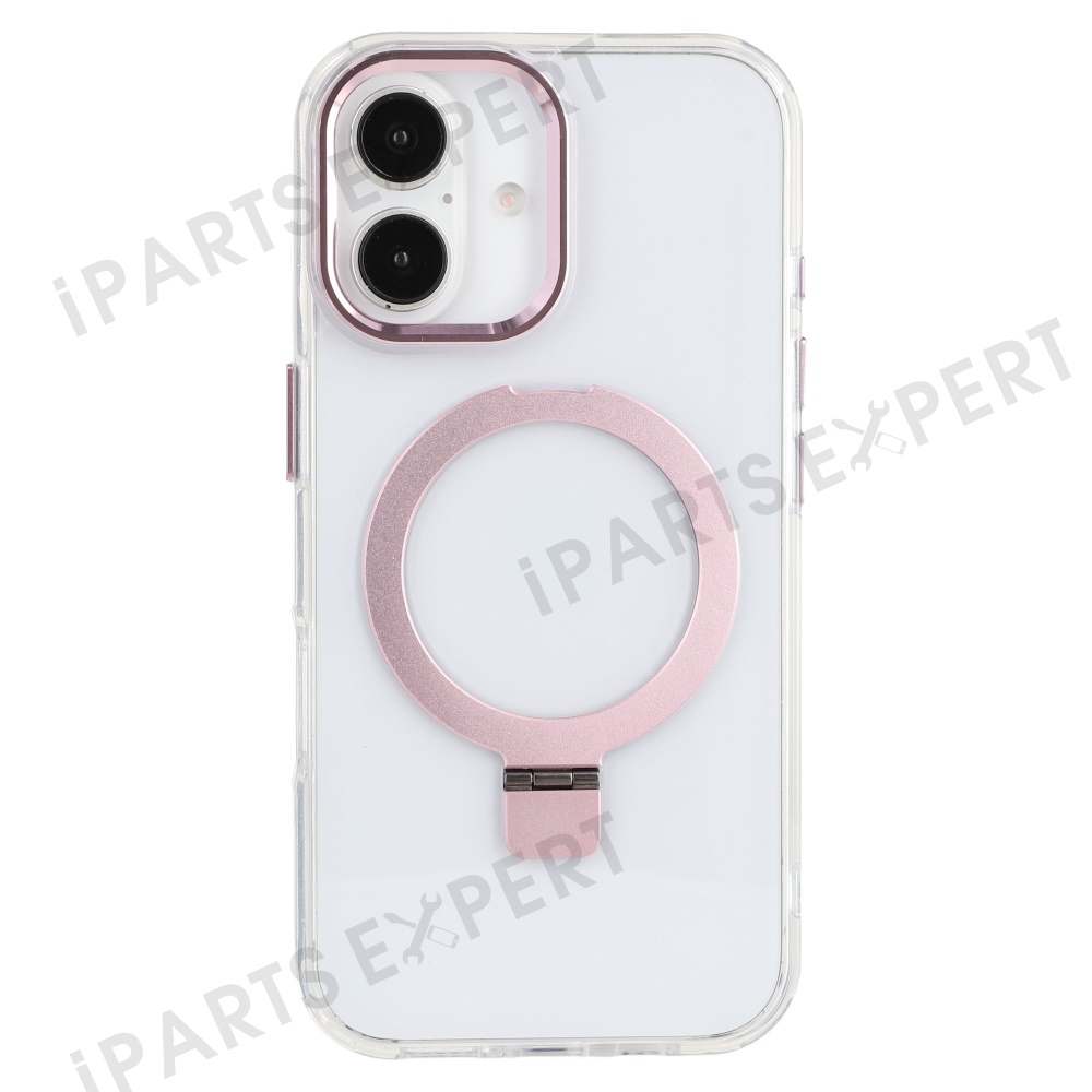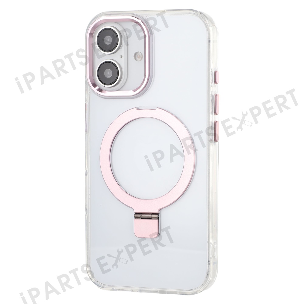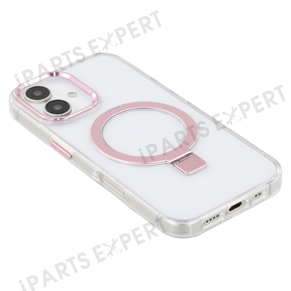 For iPhone 16 Case Compatible with MagSafe Kickstand TPU + PC Clear Phone Cover - Rose Gold