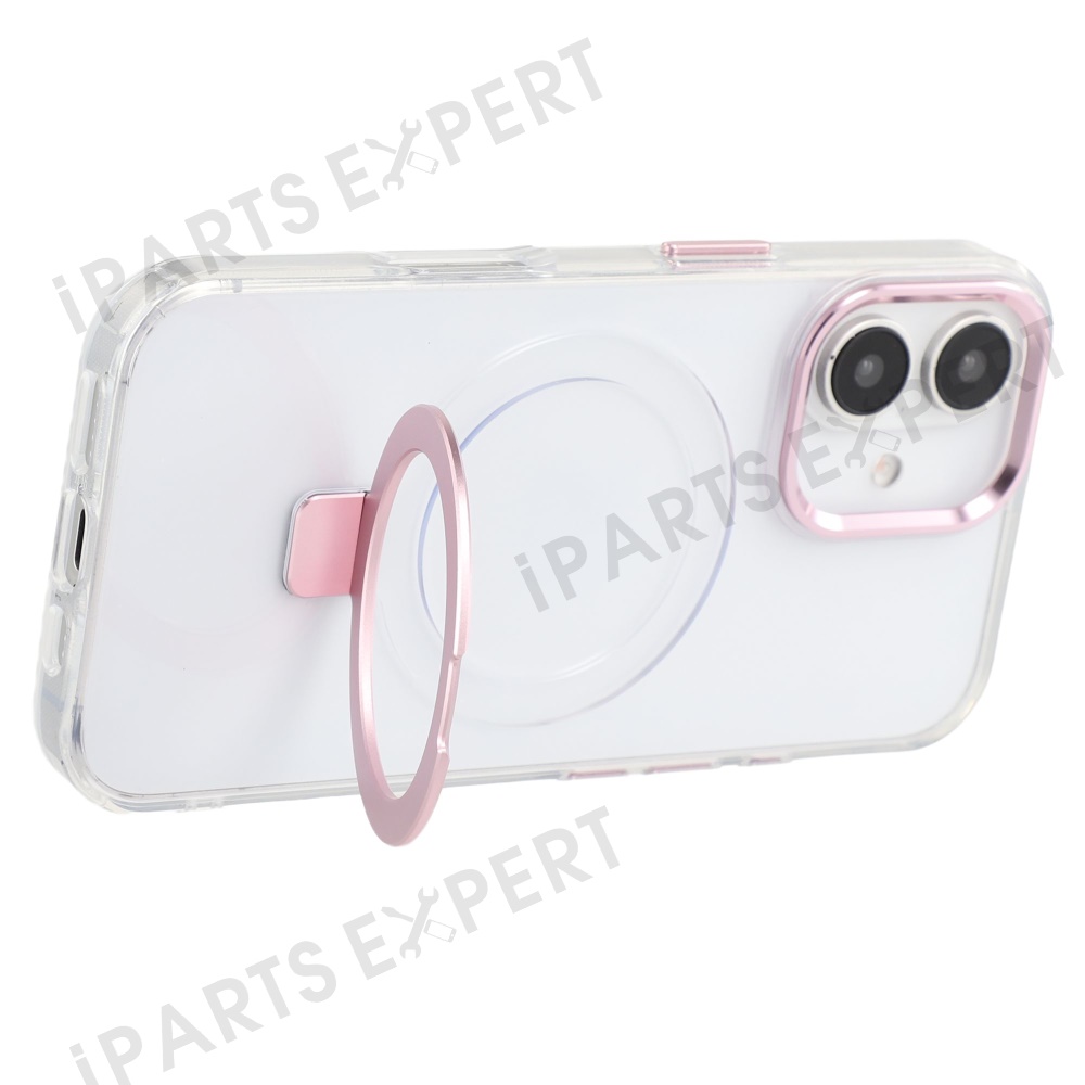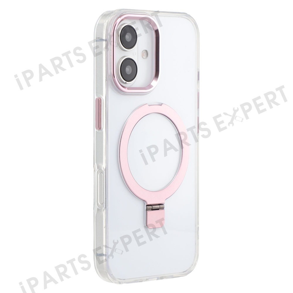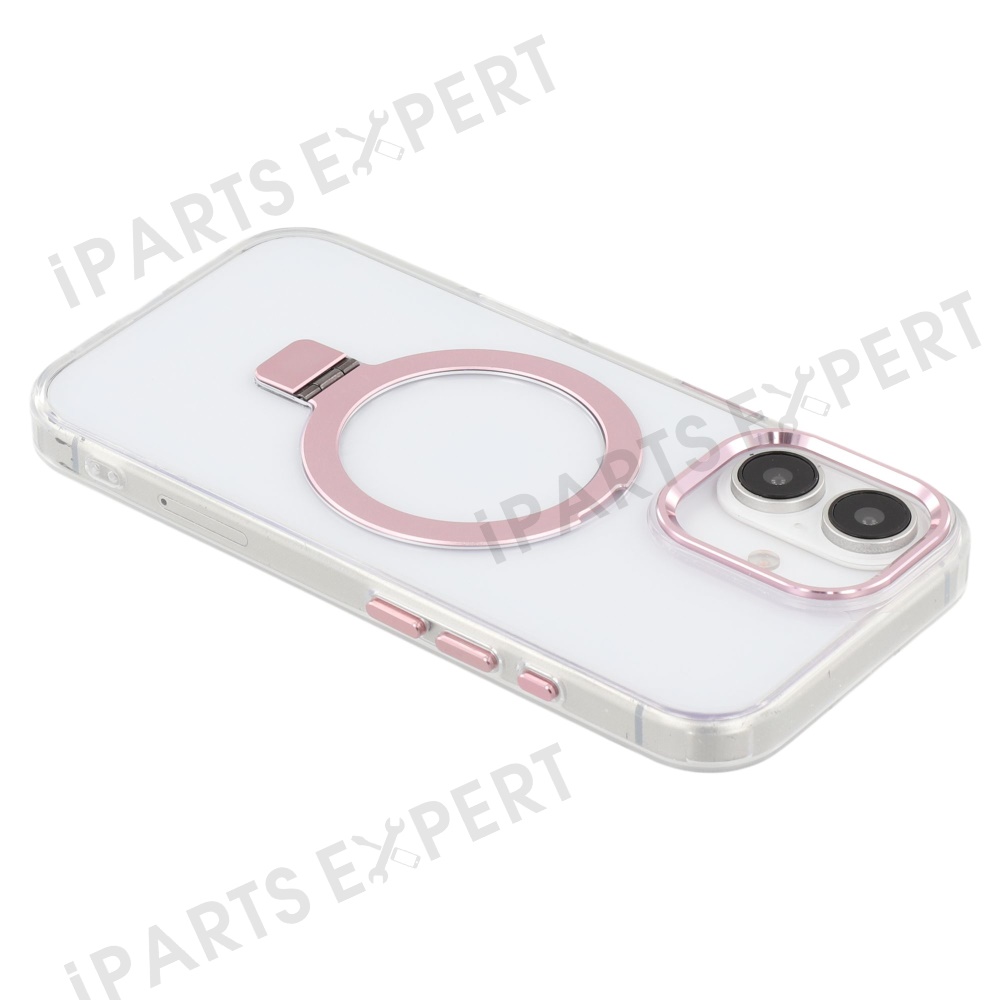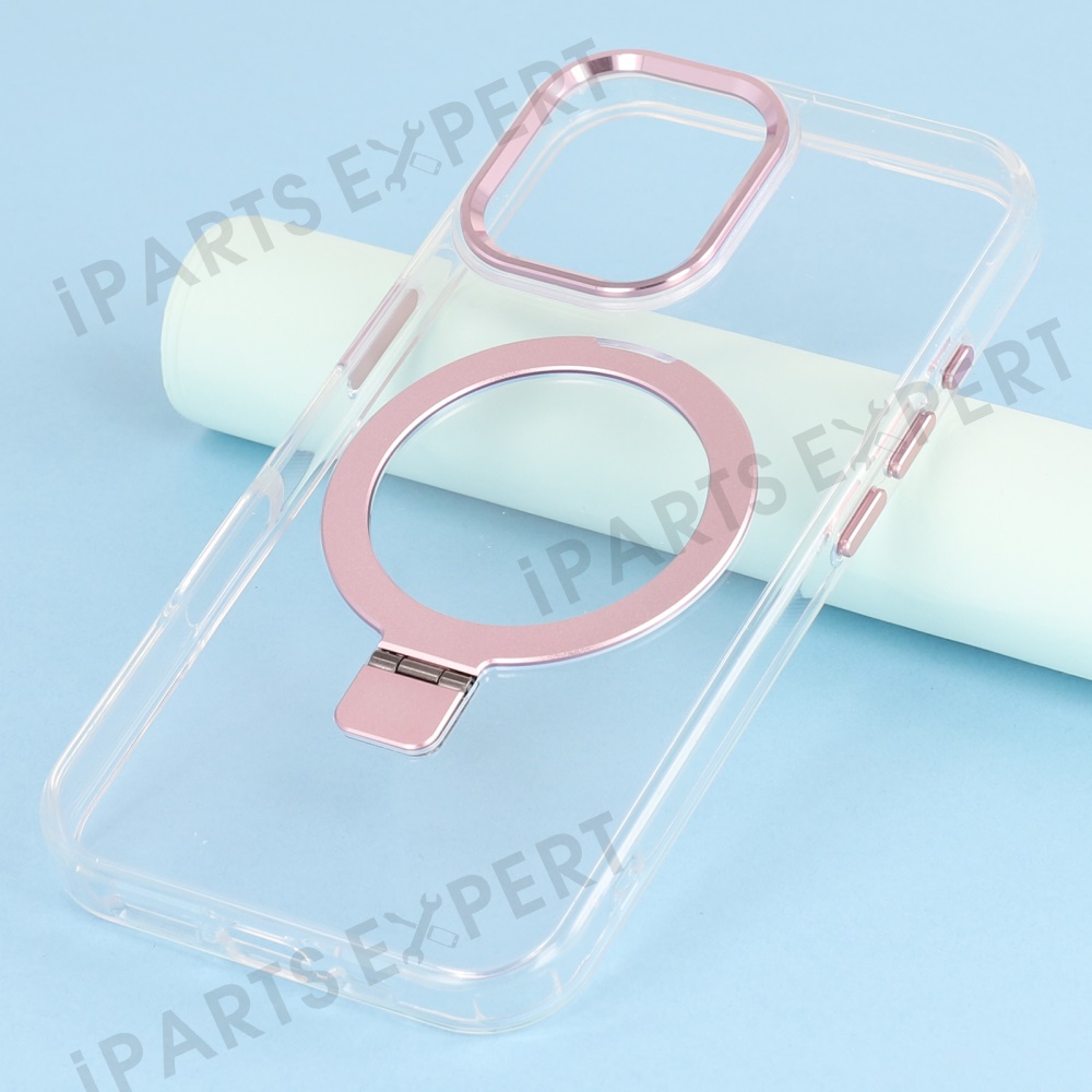 For iPhone 16 Case Compatible with MagSafe Kickstand TPU + PC Clear Phone Cover - Rose Gold