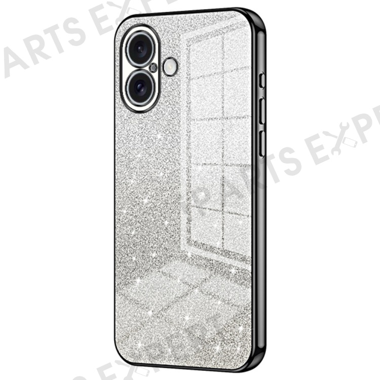 For iPhone 16 Case Electroplating Gradient Glitter TPU Phone Cover - Black