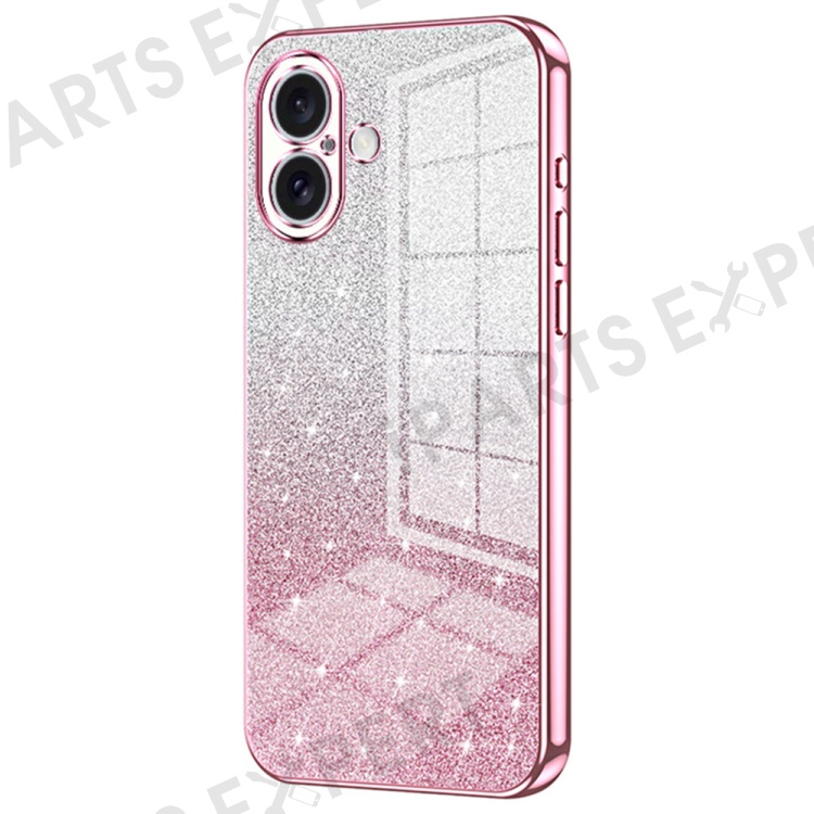 For iPhone 16 Case Electroplating Gradient Glitter TPU Phone Cover - Pink