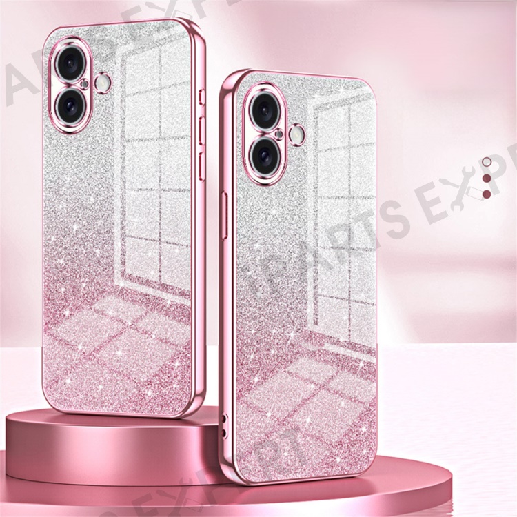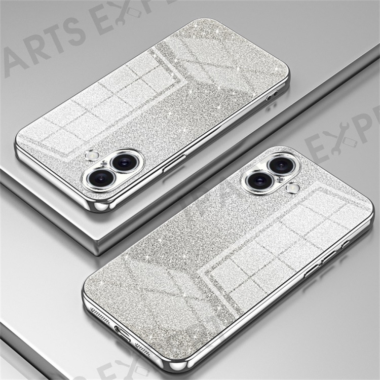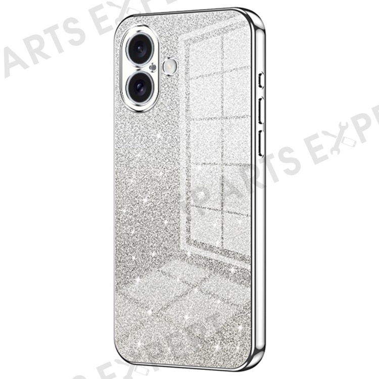 For iPhone 16 Case Electroplating Gradient Glitter TPU Phone Cover - Silver