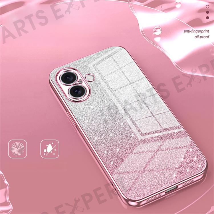 For iPhone 16 Case Electroplating Gradient Glitter TPU Phone Cover - Transparent