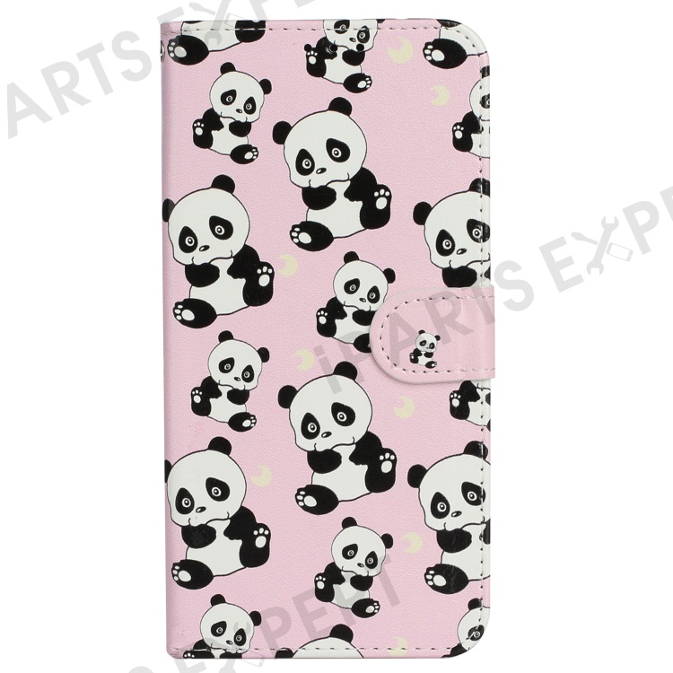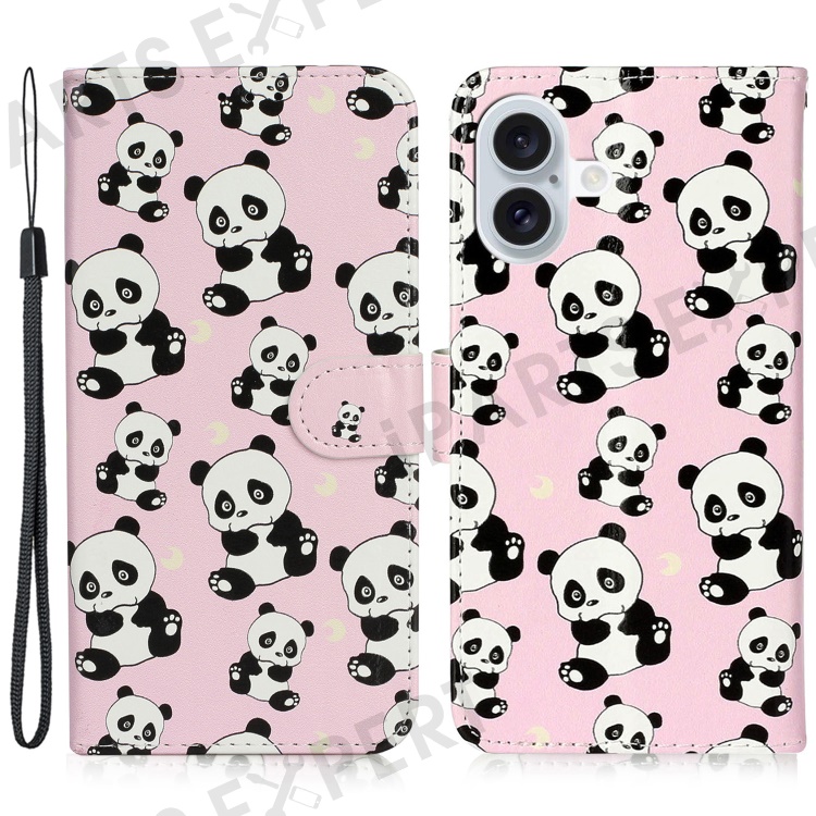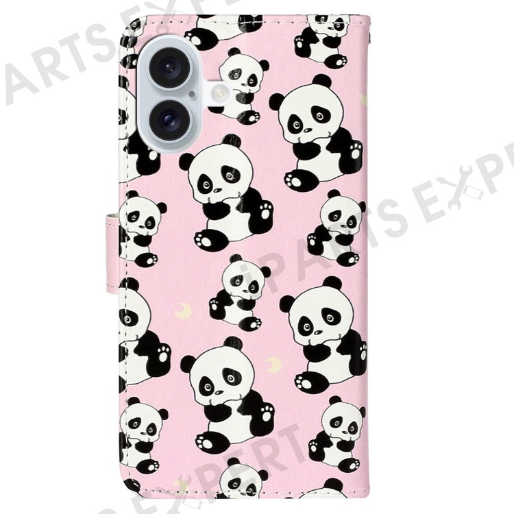 For iPhone 16 Case Leather Card Slot Holder Flip Phone Cover Pattern Printing - Panda