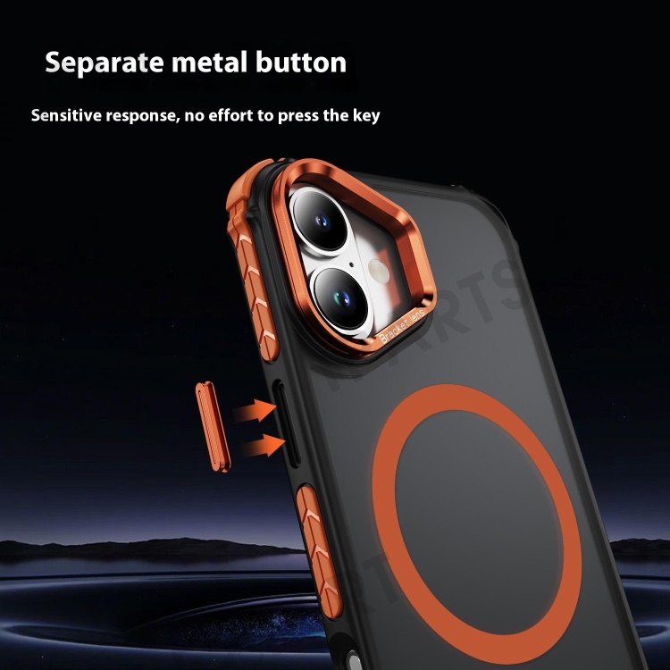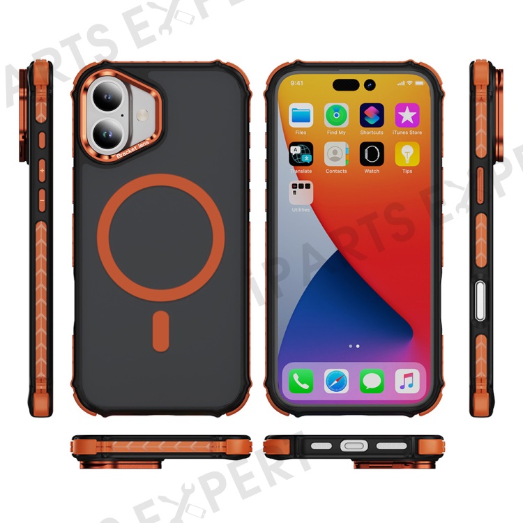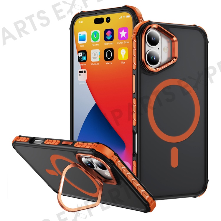 For iPhone 16 Case with Lens Kickstand Matte Back Cover Compatible with MagSafe - Orange