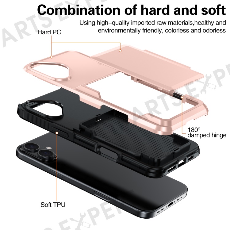 For iPhone 16 Cases Card Slot TPU+PC Kickstand Phone Case - Grey