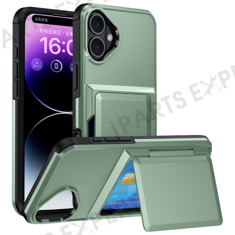 For iPhone 16 Cases Card Slot TPU+PC Kickstand Phone Case - Light Green