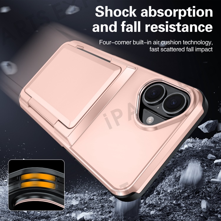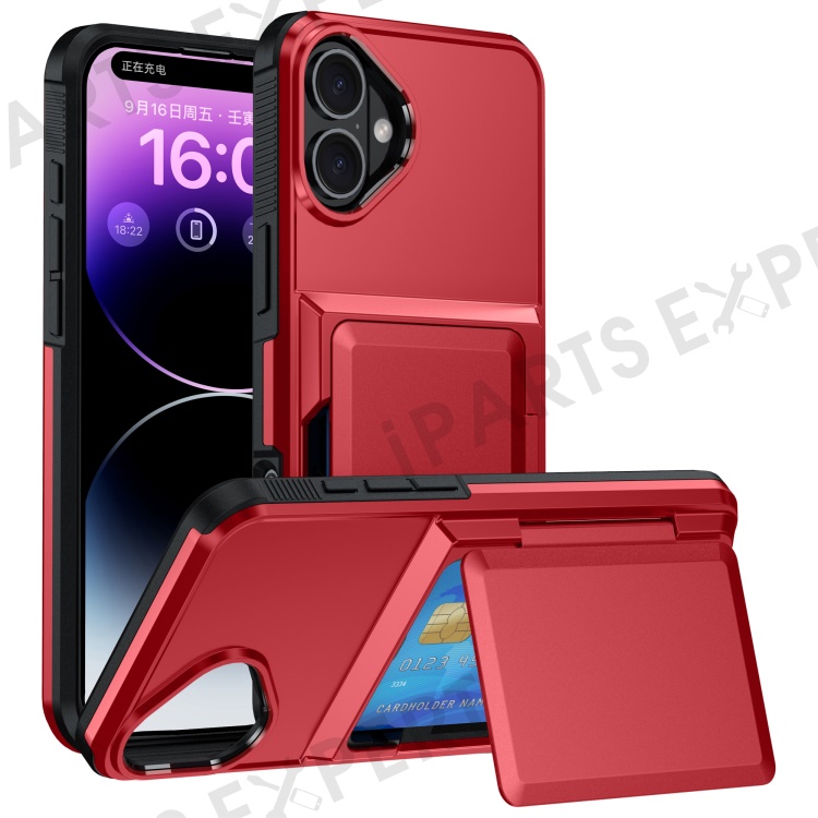 For iPhone 16 Cases Card Slot TPU+PC Kickstand Phone Case - Red