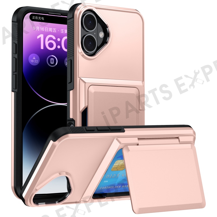 For iPhone 16 Cases Card Slot TPU+PC Kickstand Phone Case - Rose Gold