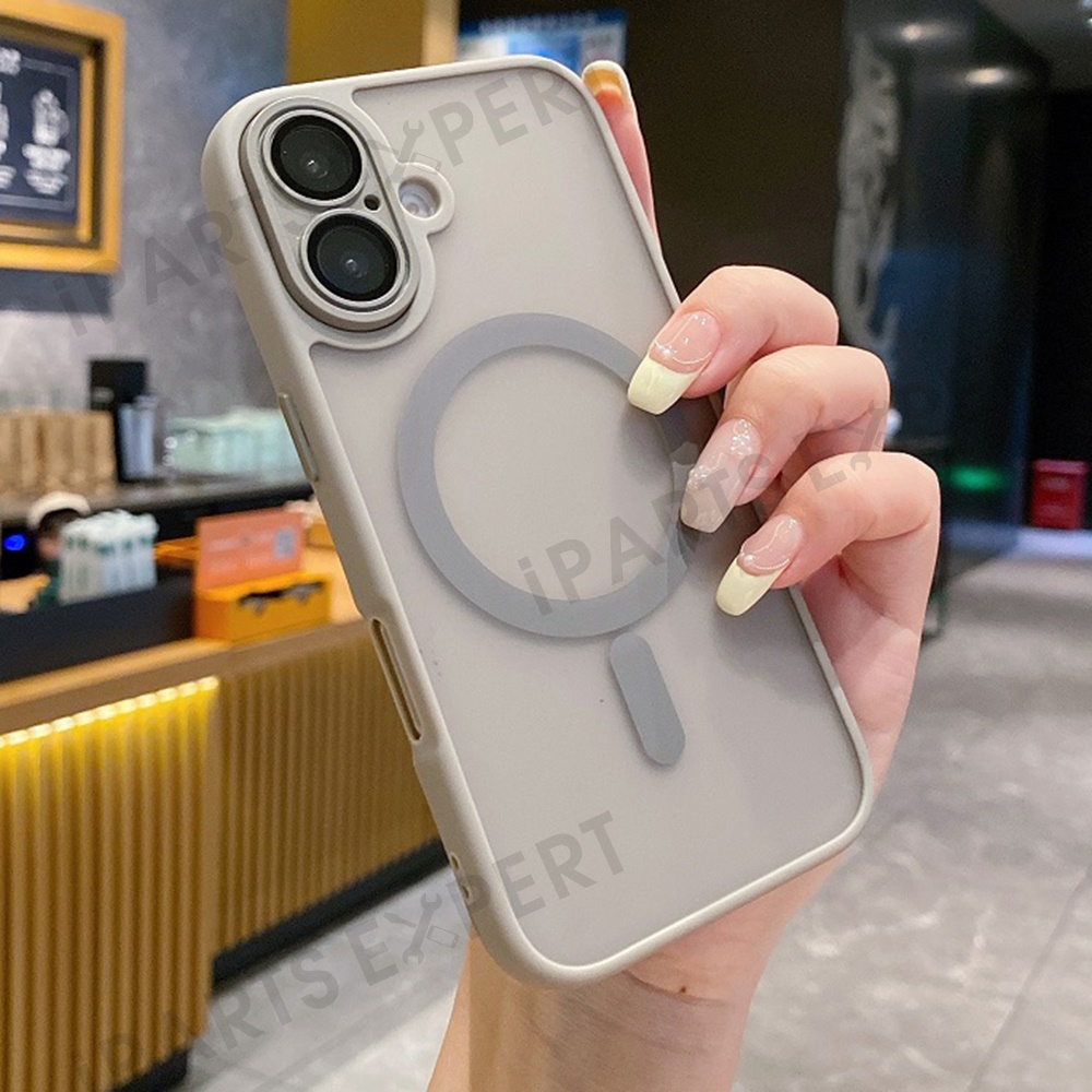 For iPhone 16 Magnetic Case with Lens Film / Detachable Lens Frame Hybrid Phone Back Cover - Grey