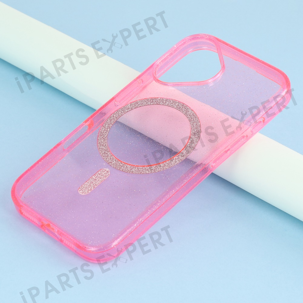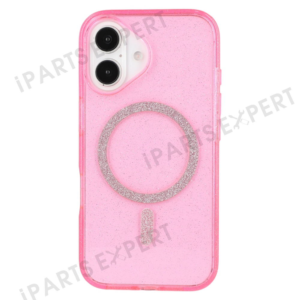 For iPhone 16 Plus Case Compatible with MagSafe 2.0mm PC + TPU Glitter Phone Cover - Pink