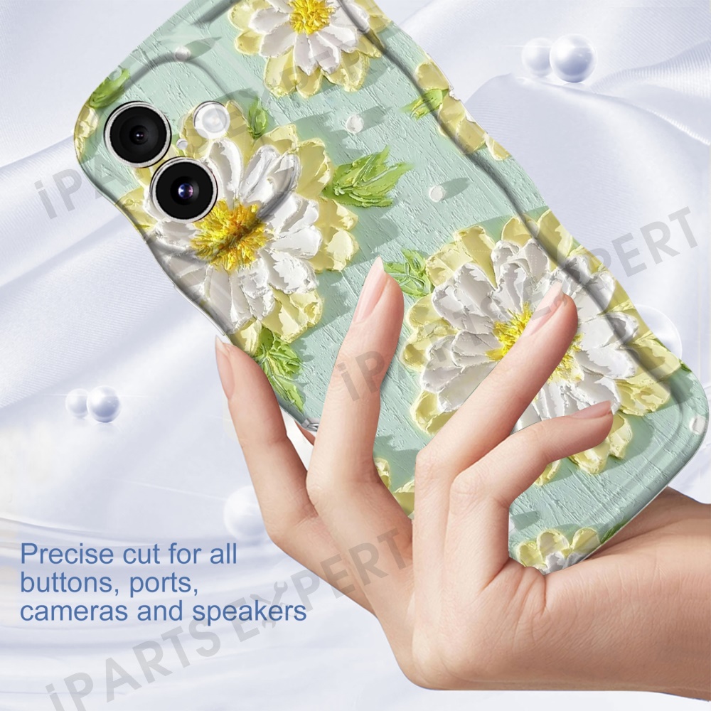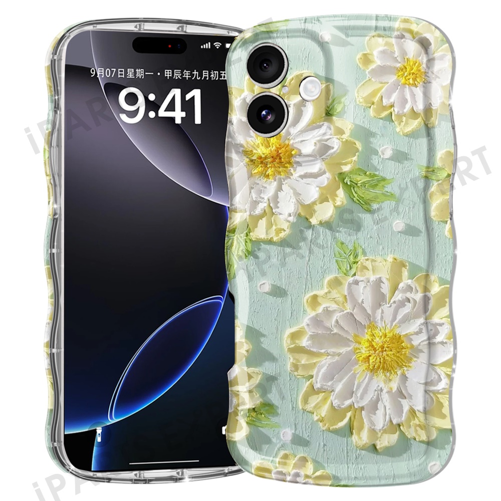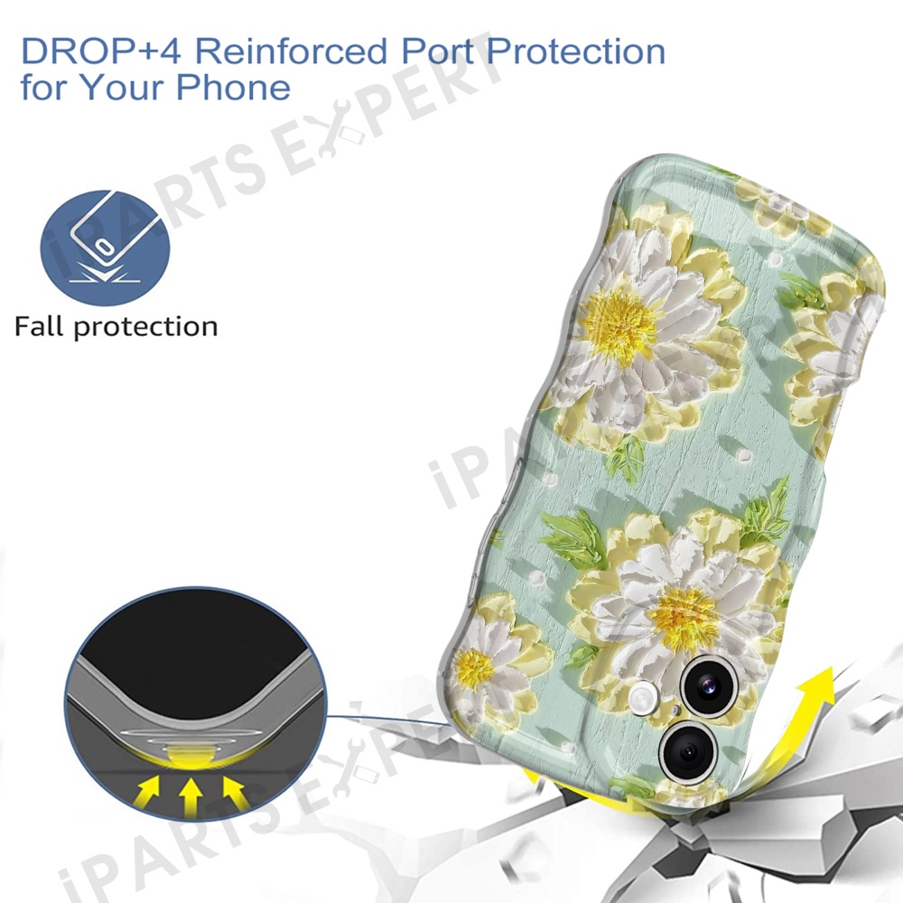 For iPhone 16 Plus Case Curly Wave Frame Floral IMD TPU Phone Cover - GWL10220