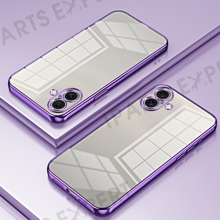 For iPhone 16 Plus Case Electroplating Frame Soft TPU Phone Cover - Purple