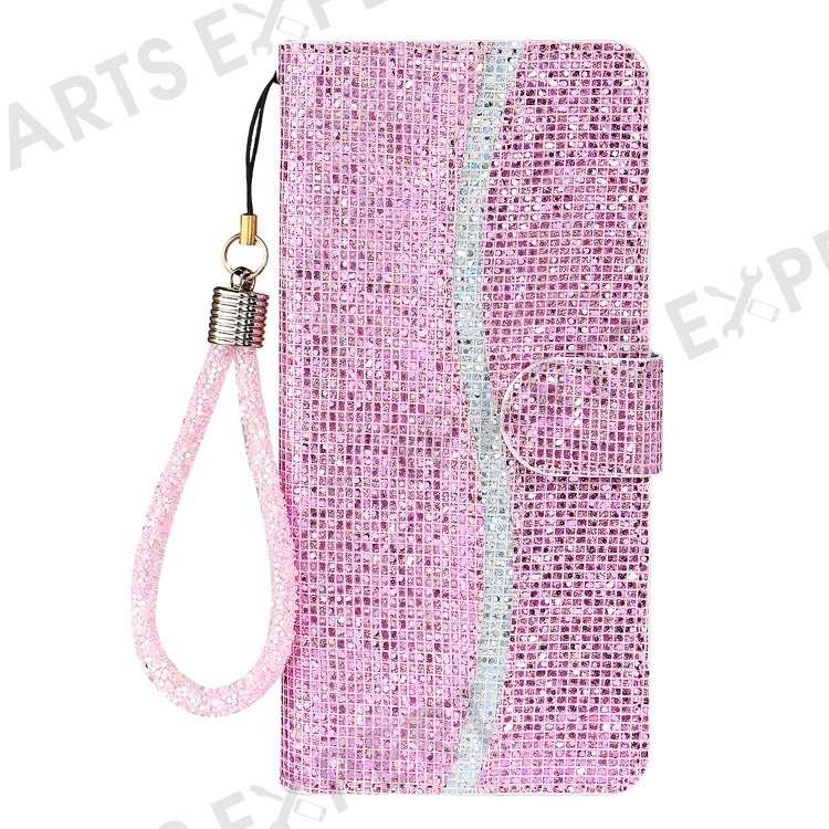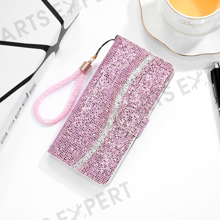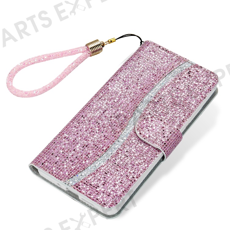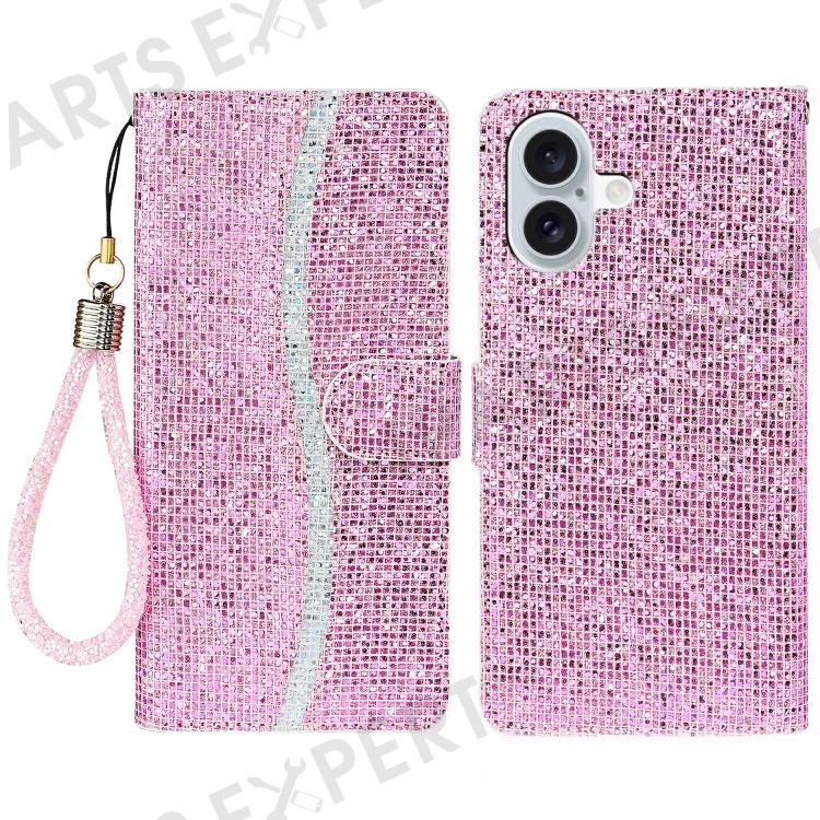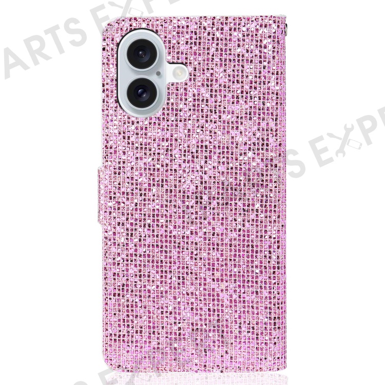 For iPhone 16 Plus Case PU Leather Wallet Card Slots Glitter Phone Cover - Pink