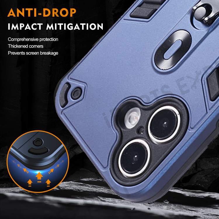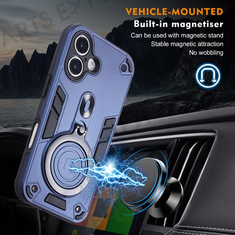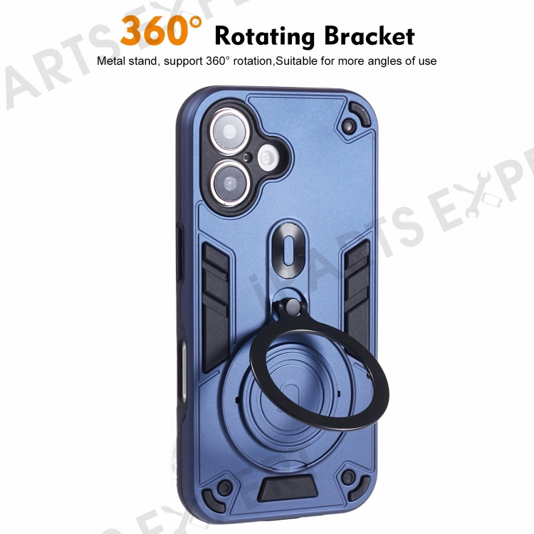 For iPhone 16 Plus Case Rotatable Kickstand PC+TPU Drop Protection Phone Cover - Blue
