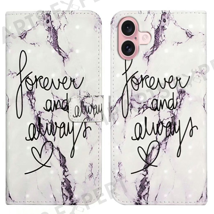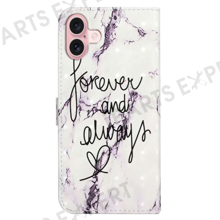 For iPhone 16 Plus Case Stand Card Holder Leather Phone Cover 3D Creative Pattern Design - Forever and Always