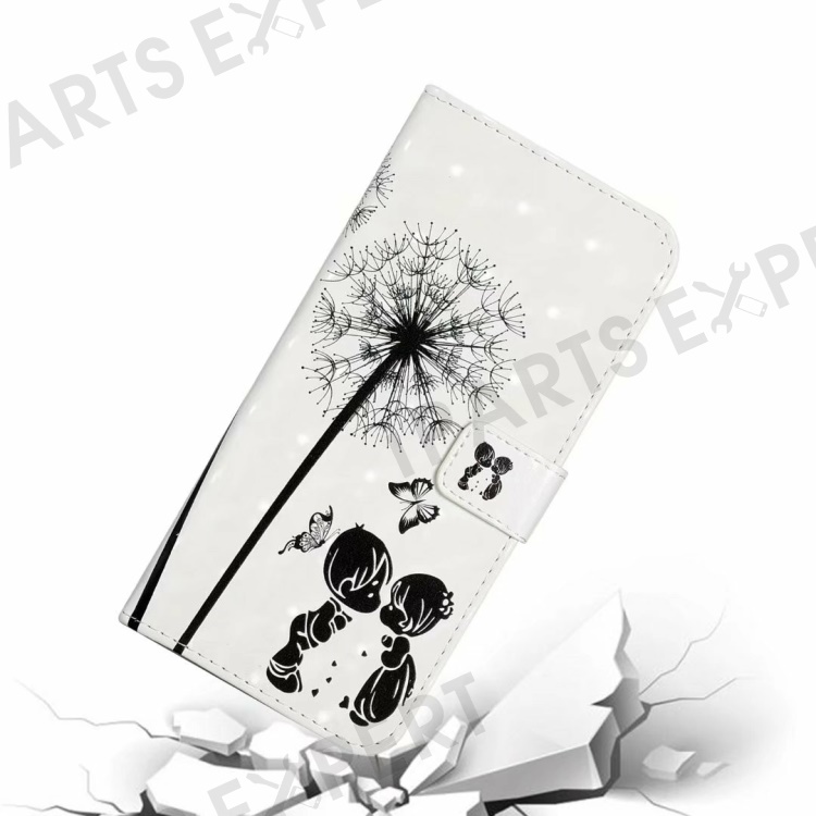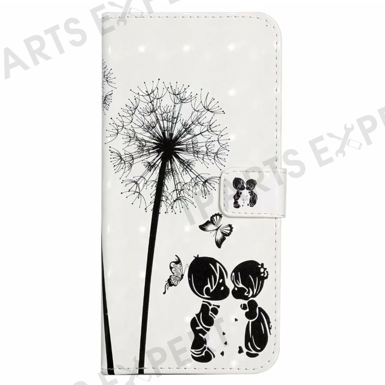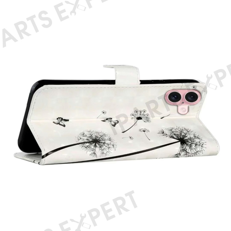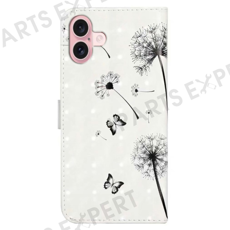 For iPhone 16 Plus Case Stand Card Holder Leather Phone Cover 3D Creative Pattern Design - Kids and Dandelion