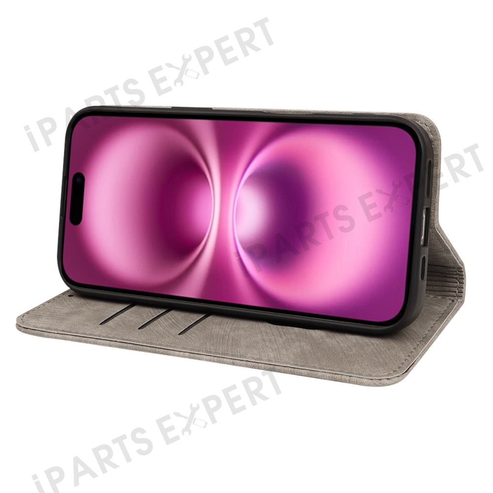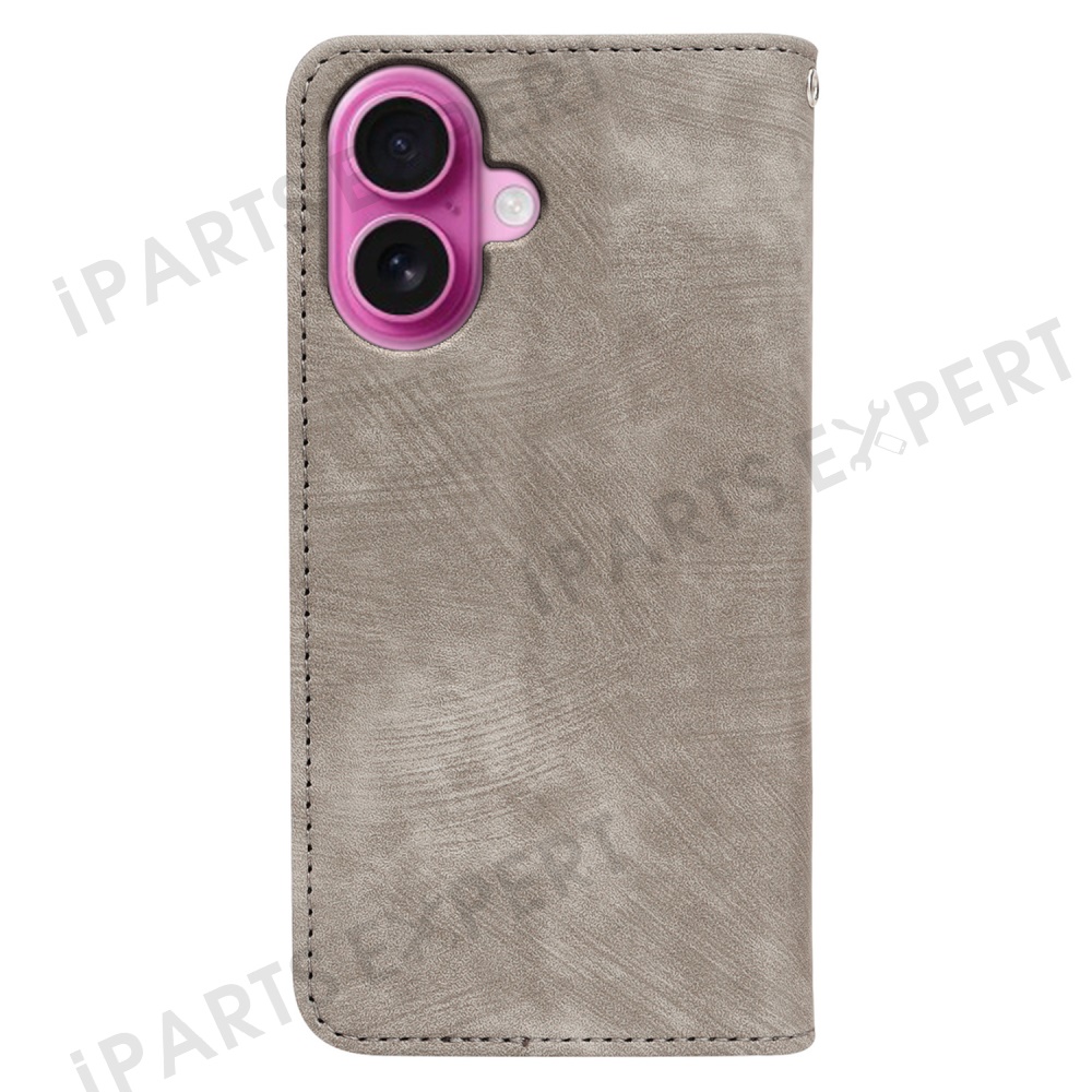 For iPhone 16 Plus Case Strong Magnetic Leather Wallet Phone Cover with Striped Texture - Grey