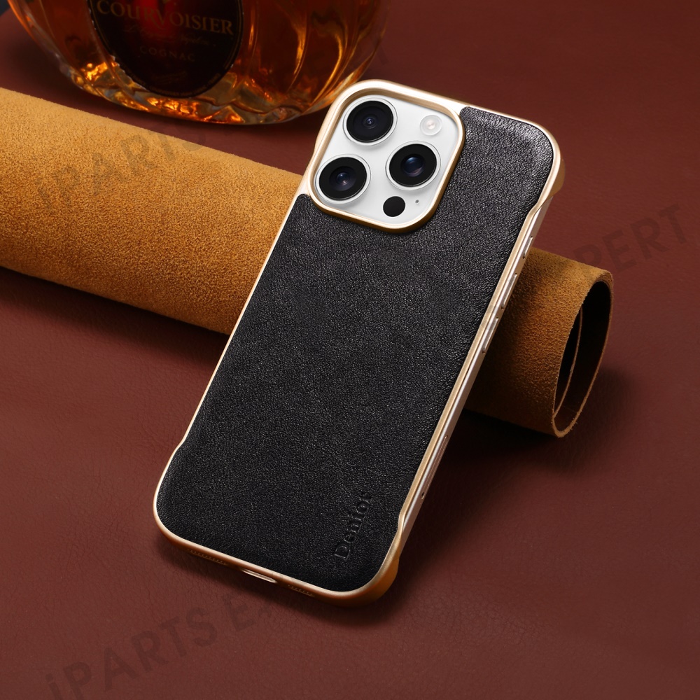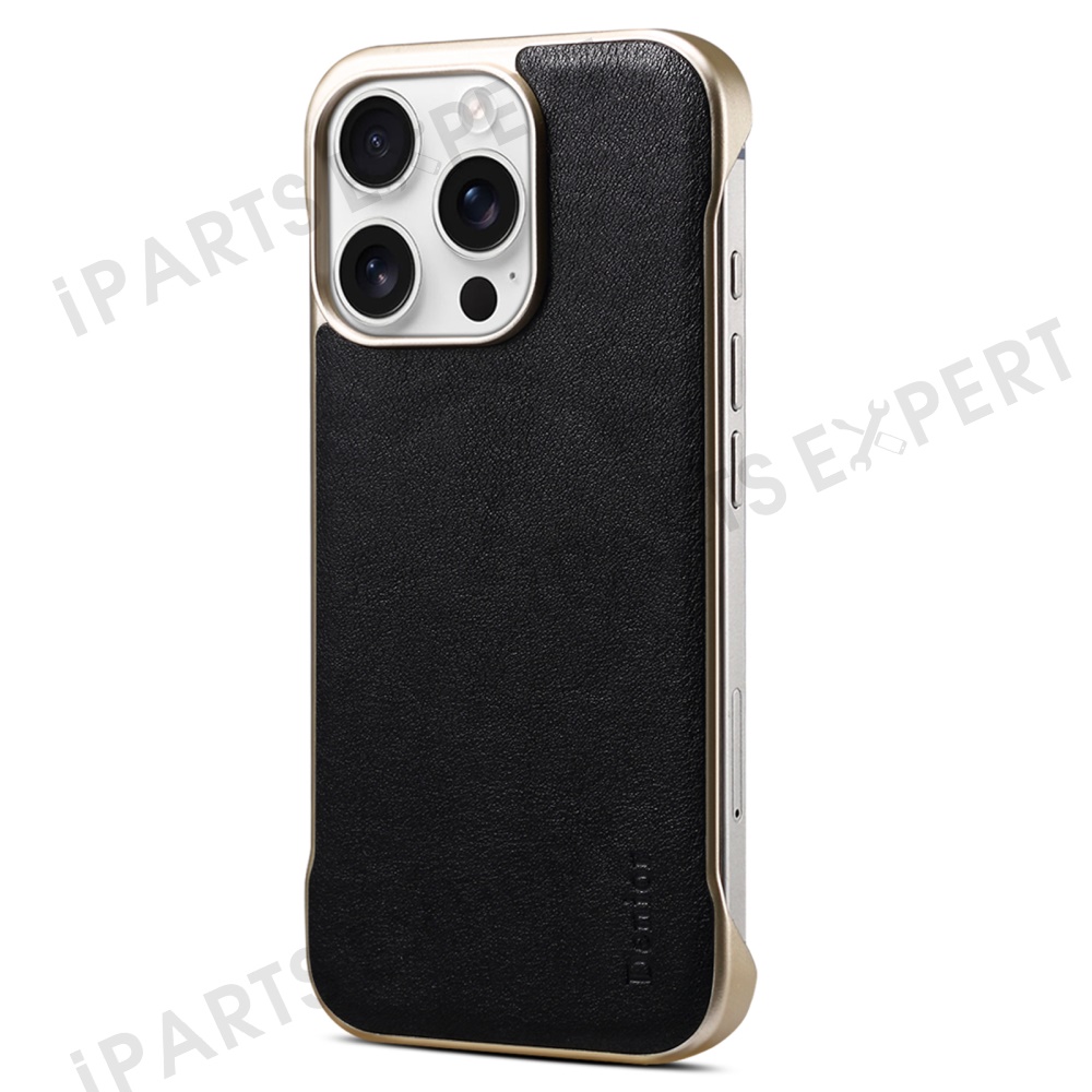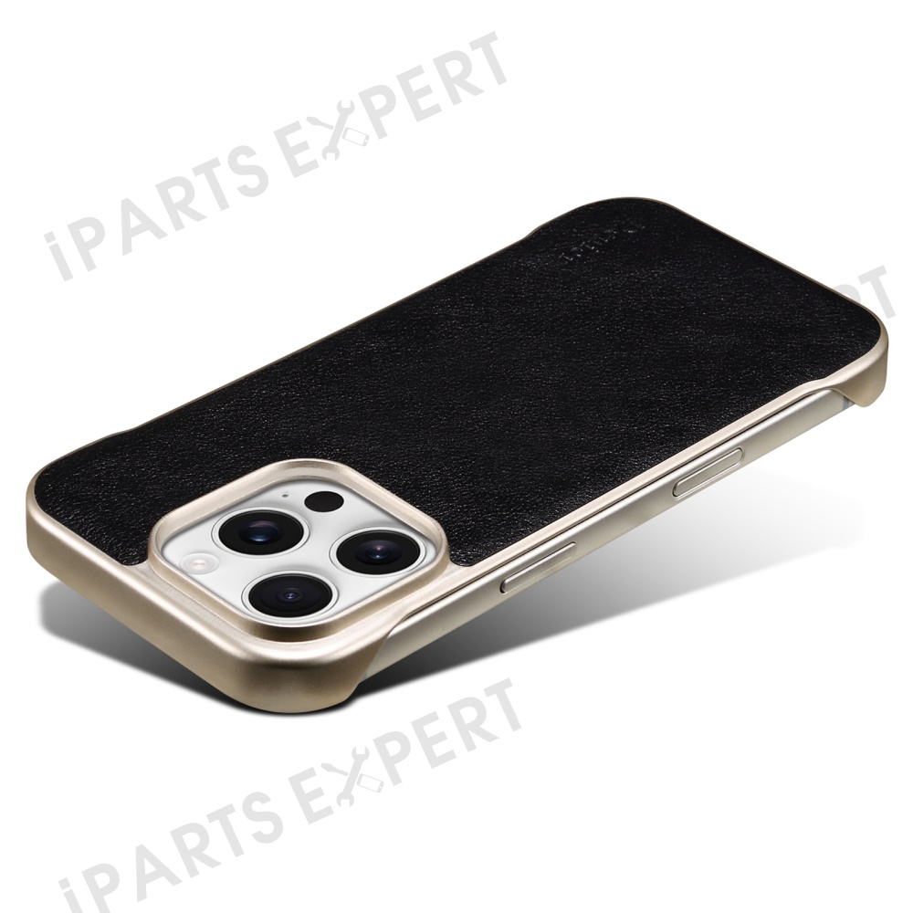 For iPhone 16 Pro Case Compatible with MagSafe Genuine Cow Leather + PC Phone Cover - Black