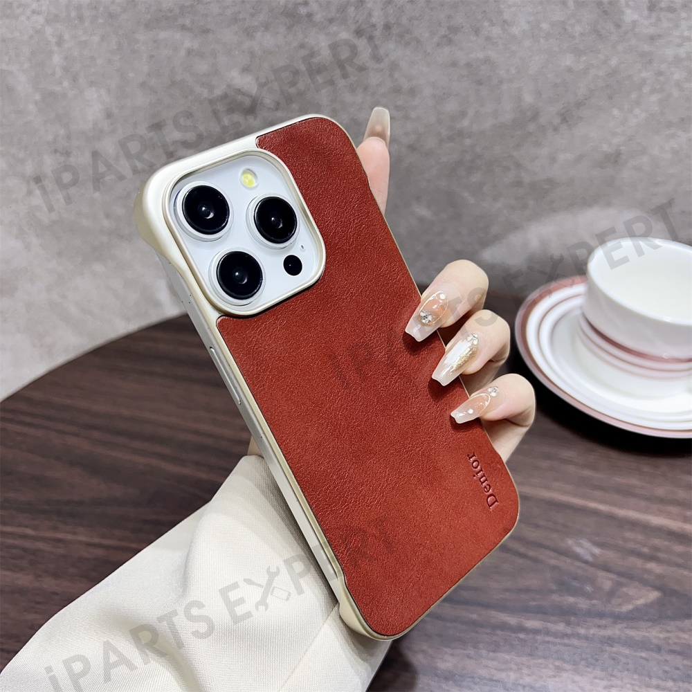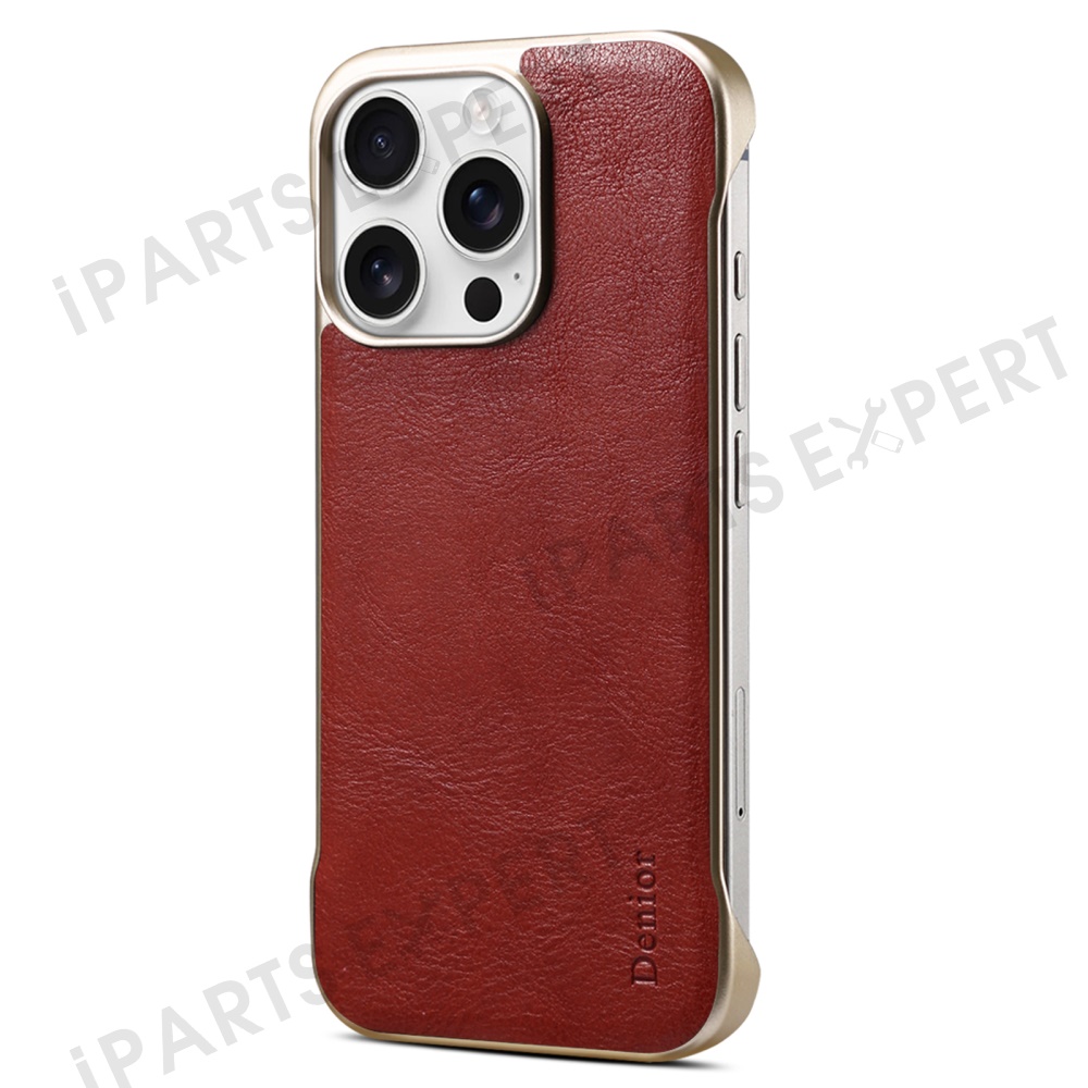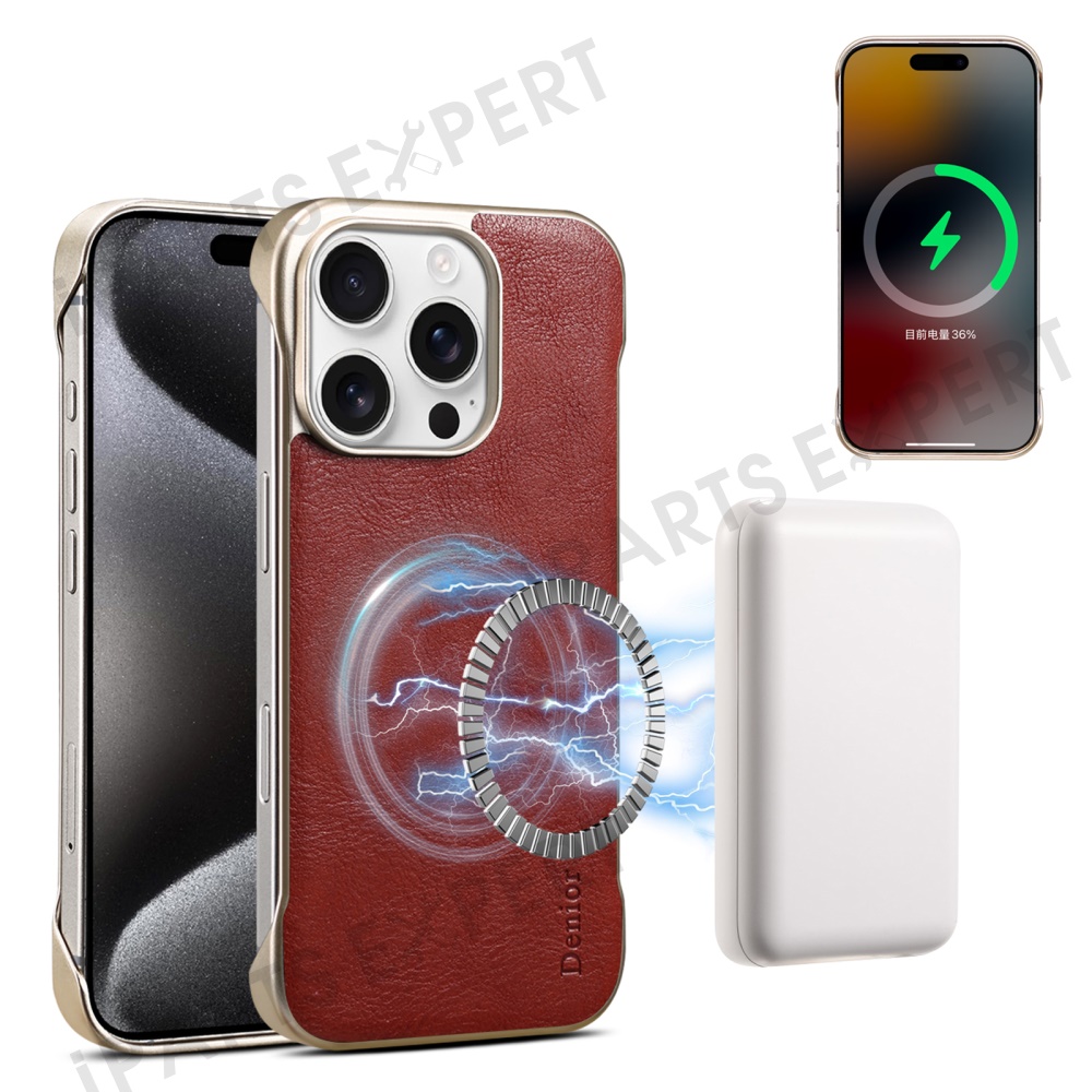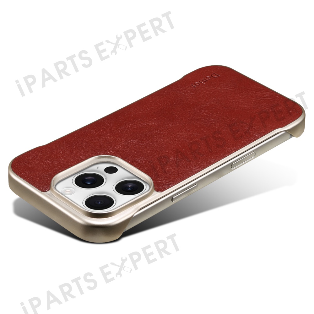 For iPhone 16 Pro Case Compatible with MagSafe Genuine Cow Leather + PC Phone Cover - Red