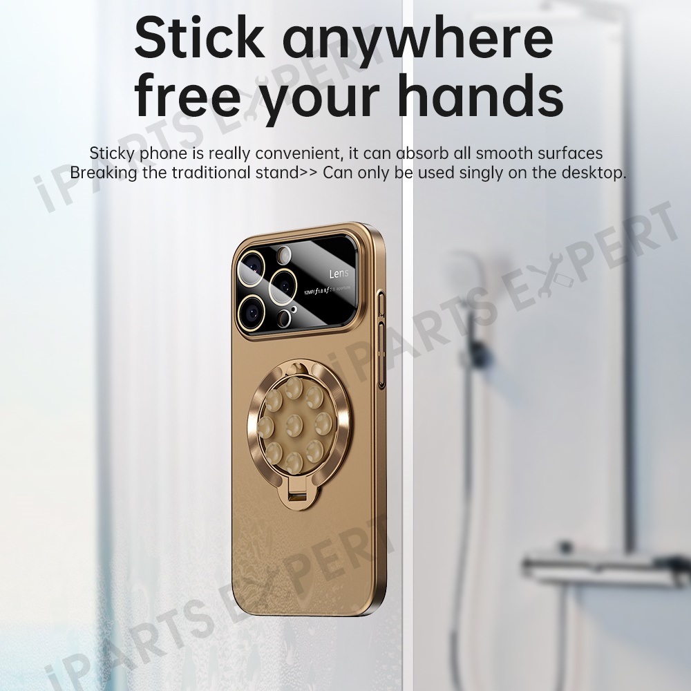 - 【Suction Cup Kickstand】 allows you to easily place your phone on a flat desktop or attach it securely to smooth wall surfaces for hands-free viewing.