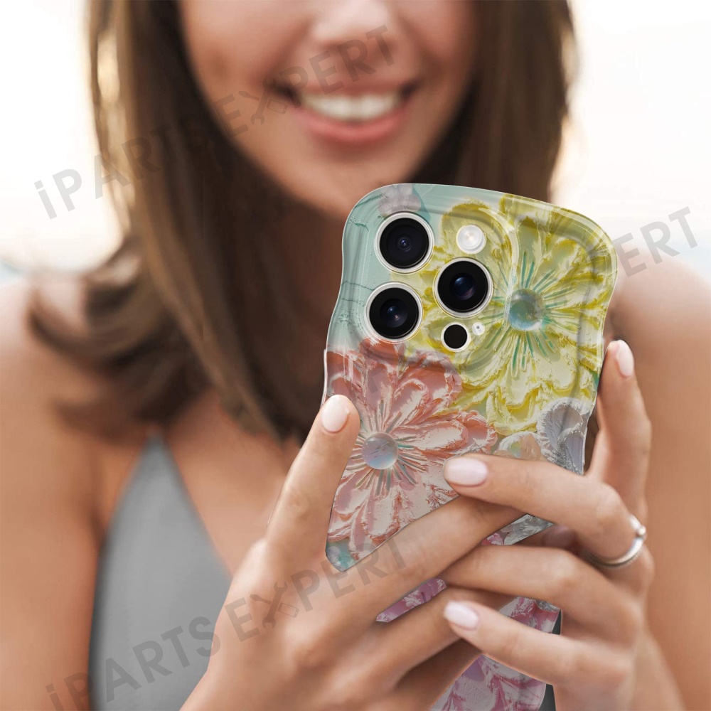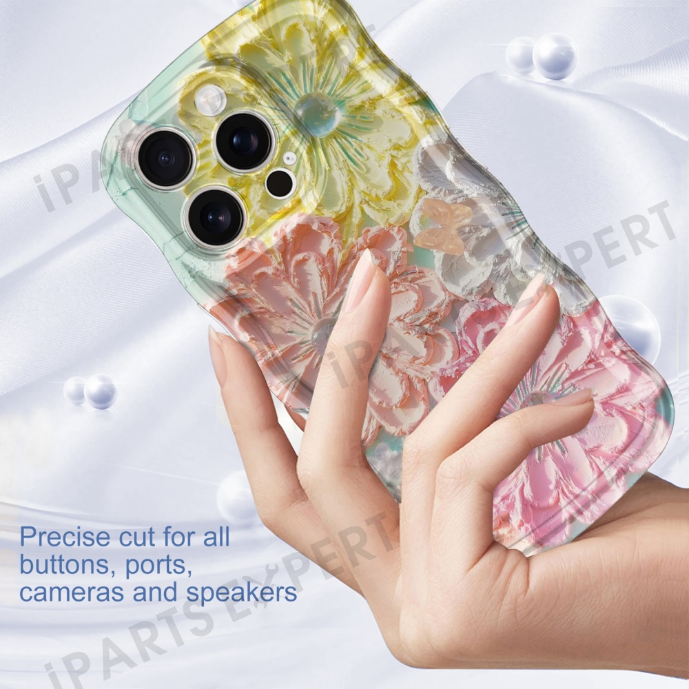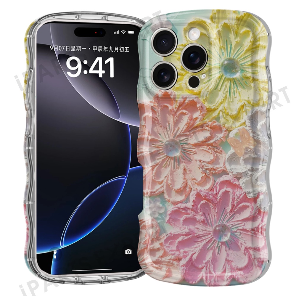For iPhone 16 Pro Case Curly Wave Frame Floral IMD TPU Phone Cover - GWL10223