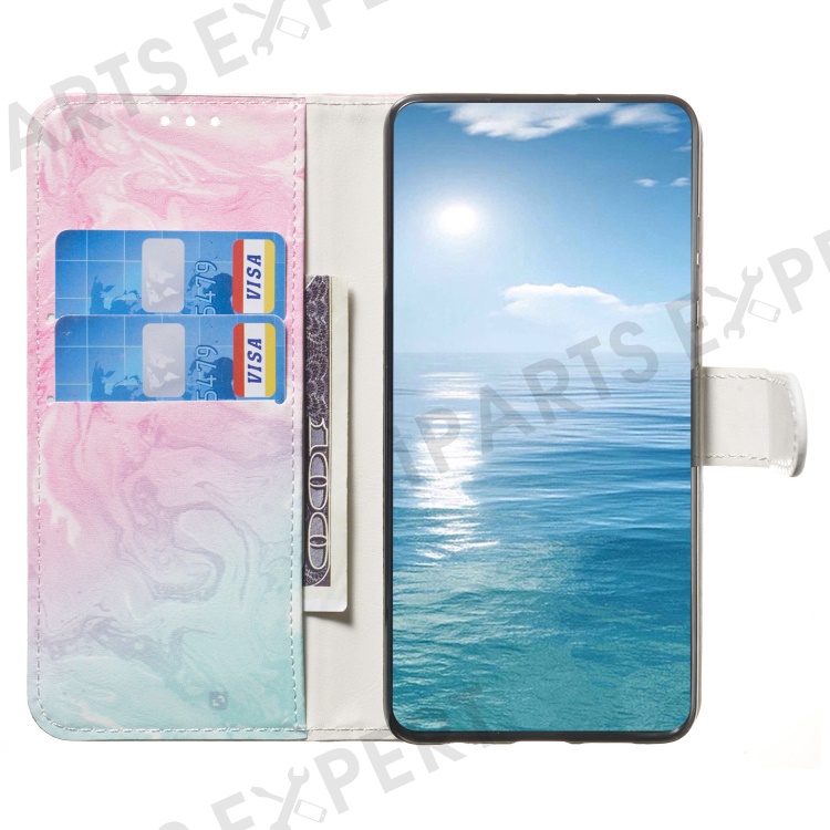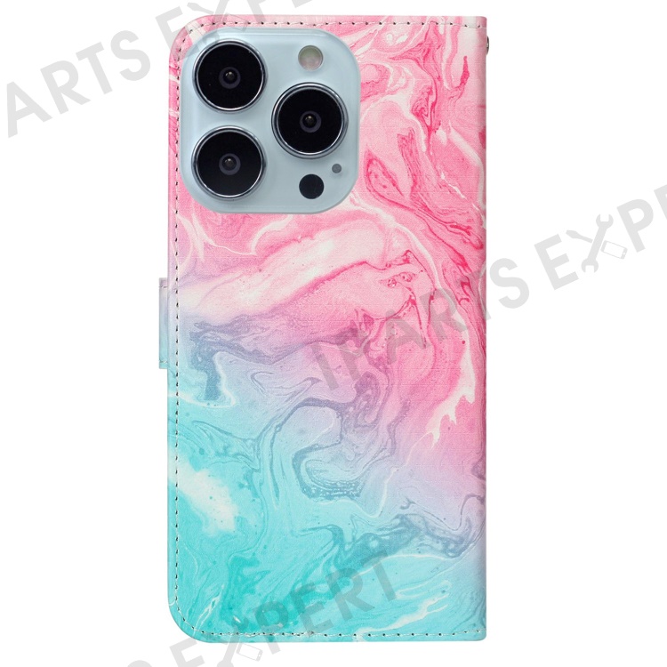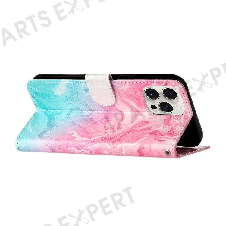 For iPhone 16 Pro Case Pattern Leather Phone Cover with Card Slots Holder - Pink Green Marble