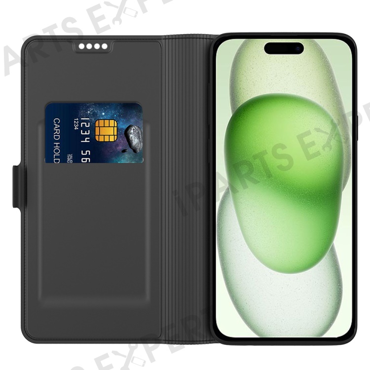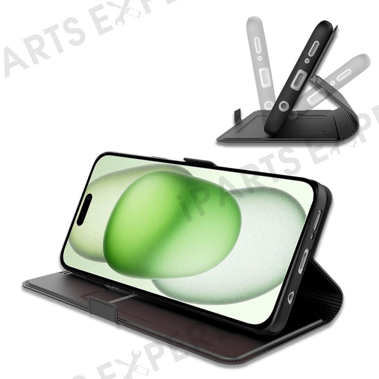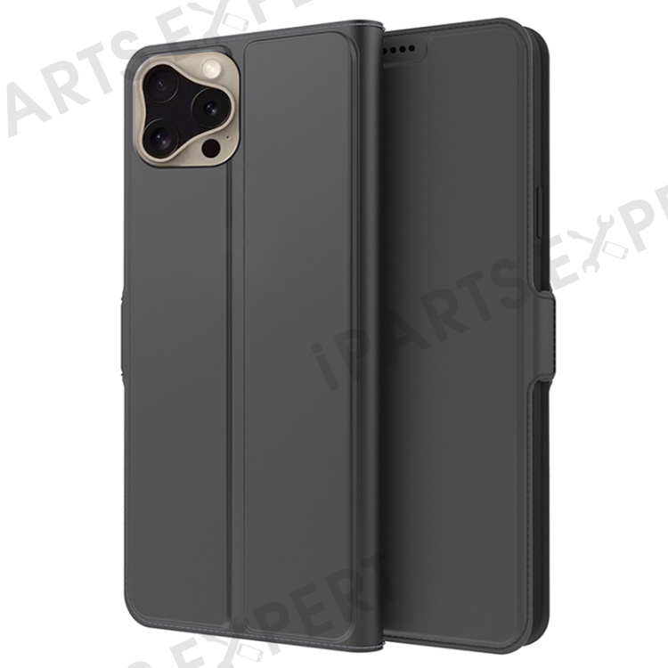 For iPhone 16 Pro Case PU Leather Phone Cover Card Slot Stand Magnetic Clasp - Black