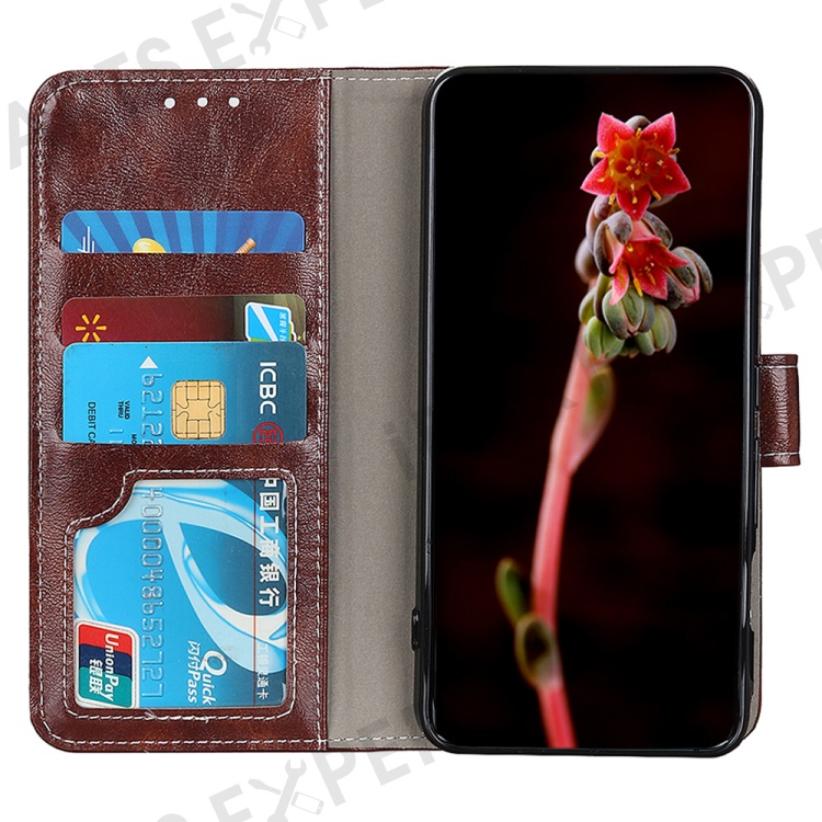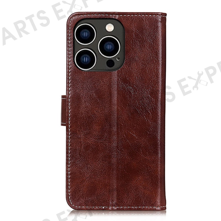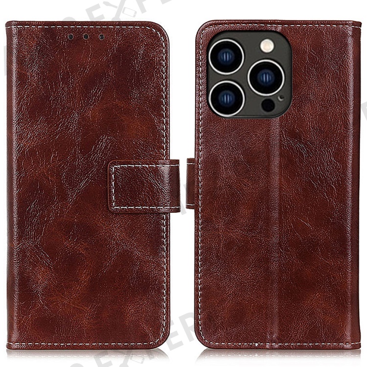 For iPhone 16 Pro Case Retro Crazy Horse Texture Leather Phone Wallet Cover - Brown