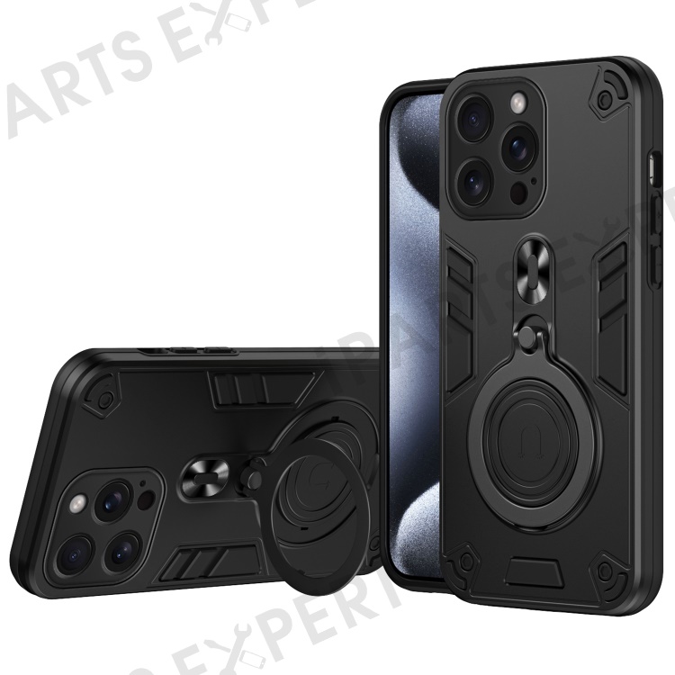 For iPhone 16 Pro Case Rotatable Kickstand PC+TPU Drop Protection Phone Cover - Black