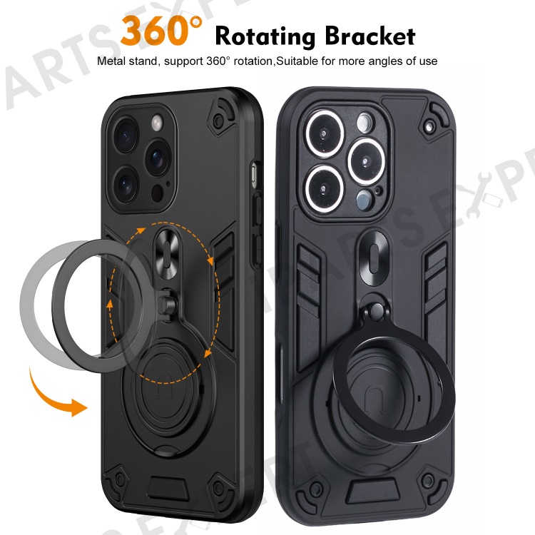 - 【360° Rotating Metal Kickstand】 The case features a metal kickstand that supports 360° rotation, allowing for multiple viewing angles and hands-free use