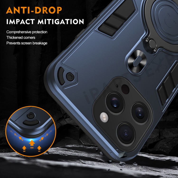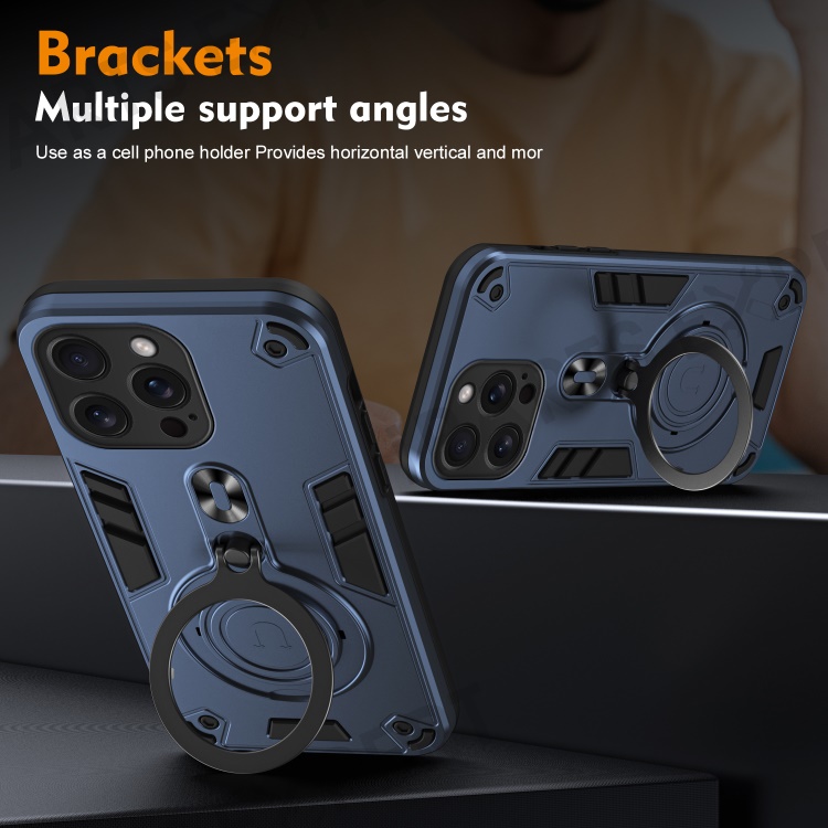 For iPhone 16 Pro Case Rotatable Kickstand PC+TPU Drop Protection Phone Cover - Blue