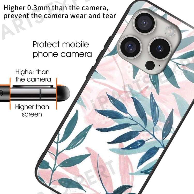 For iPhone 16 Pro Case Tempered Glass TPU Phone Cover Pattern Printing - Style I