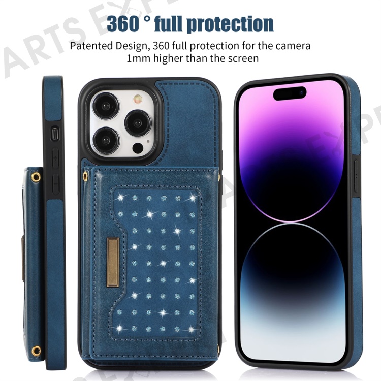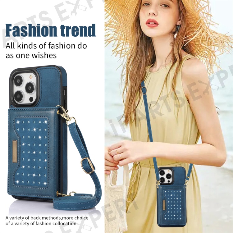 - Stylish Wallet Design: Featuring a wallet design decorated with rhinestones, it includes multiple card slots for easy carrying of cash, ID, or bank cards, providing convenience and style