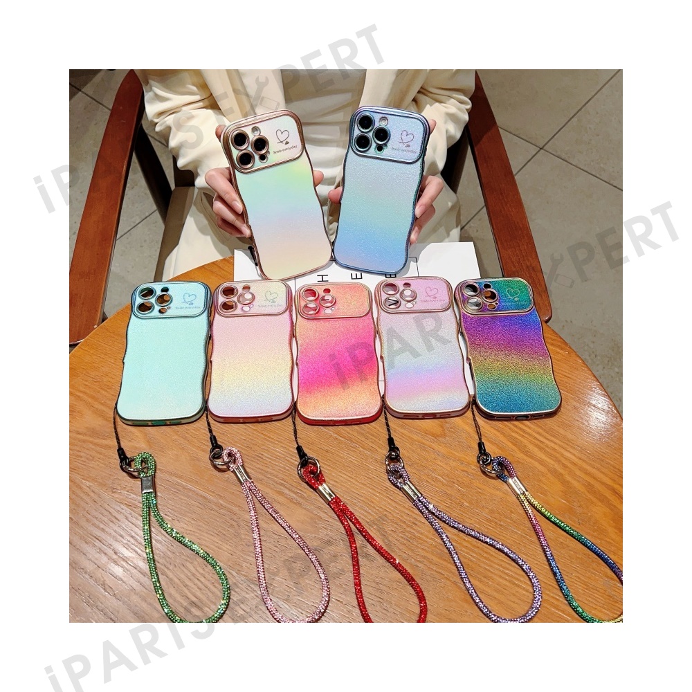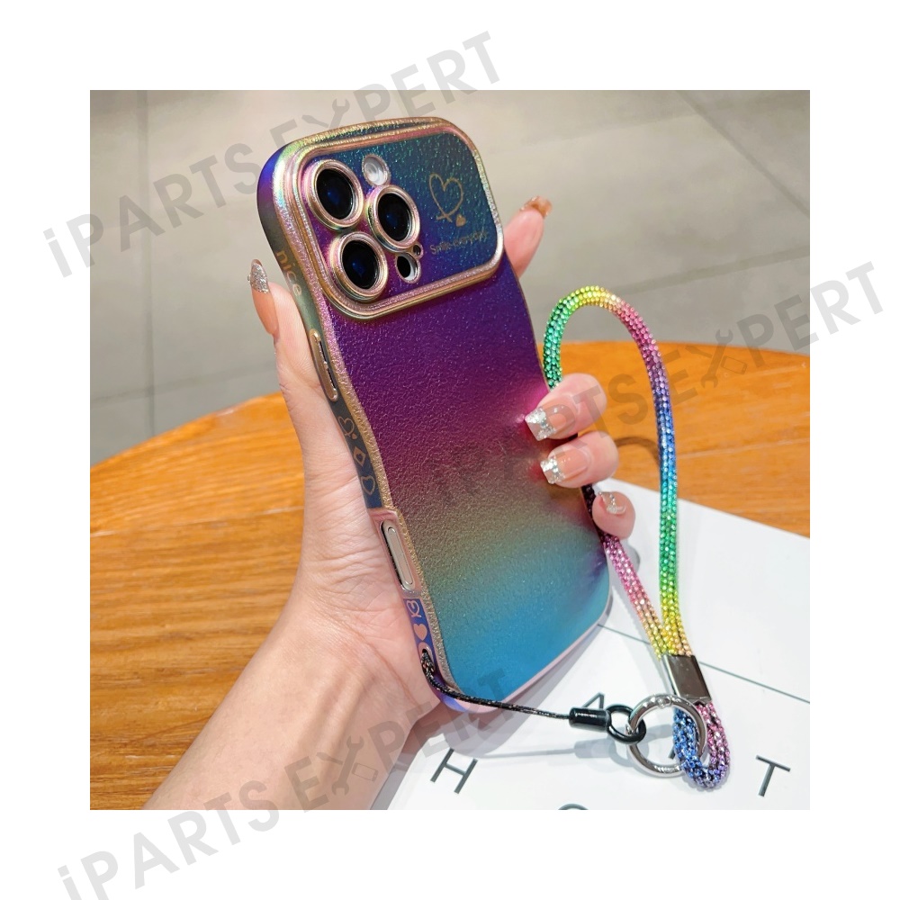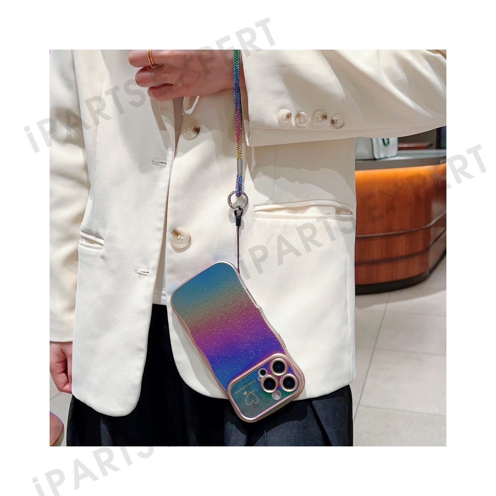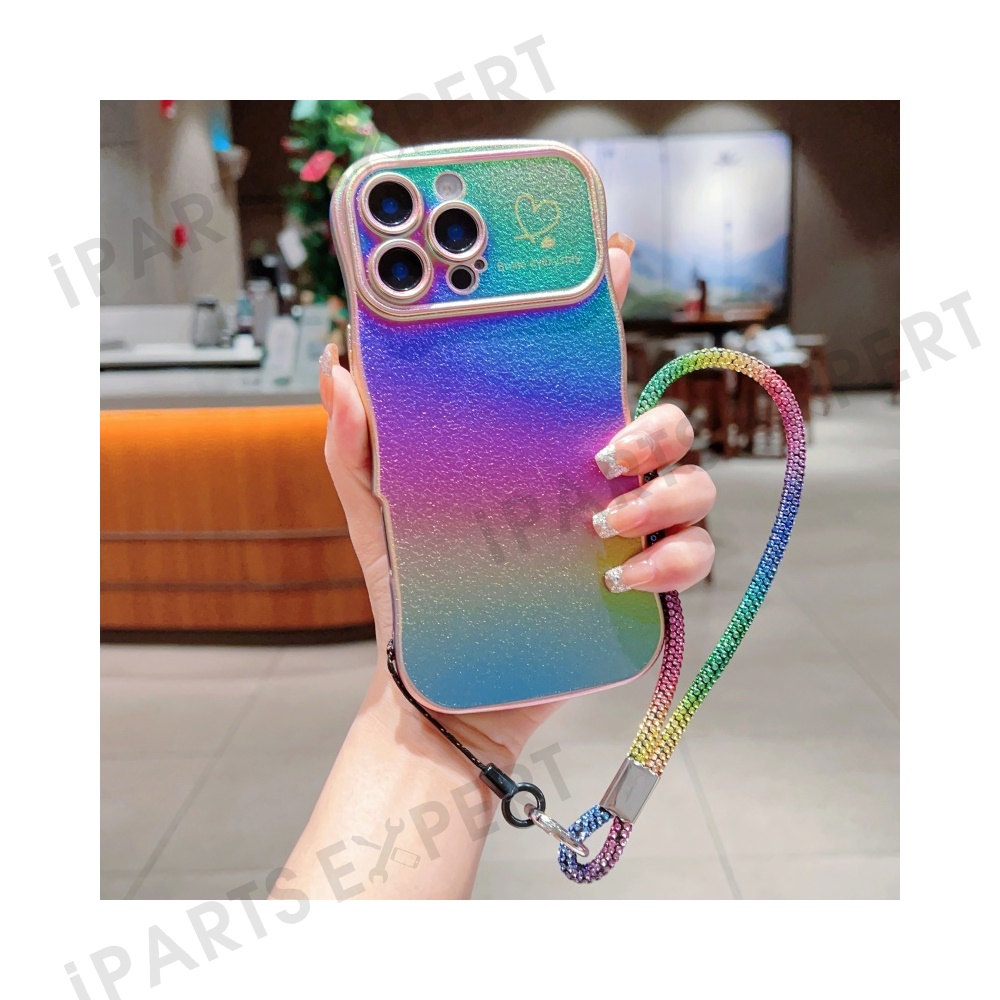 For iPhone 16 Pro Case with Strap TPU Phone Back Cover Dazzling Design Curly Shape Love Heart - Colorful