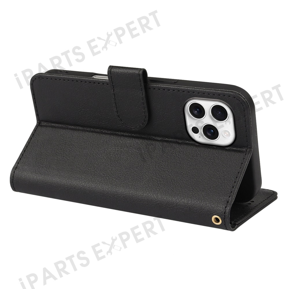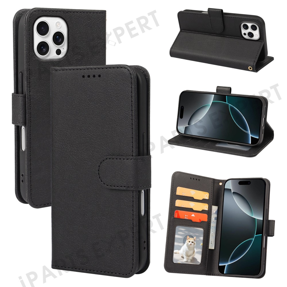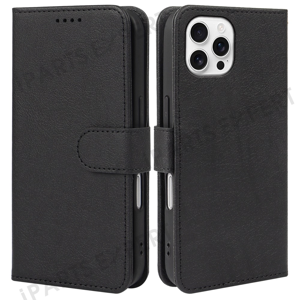 For iPhone 16 Pro Leather Case Wallet Stand Magnetic Closure Phone Cover - Black