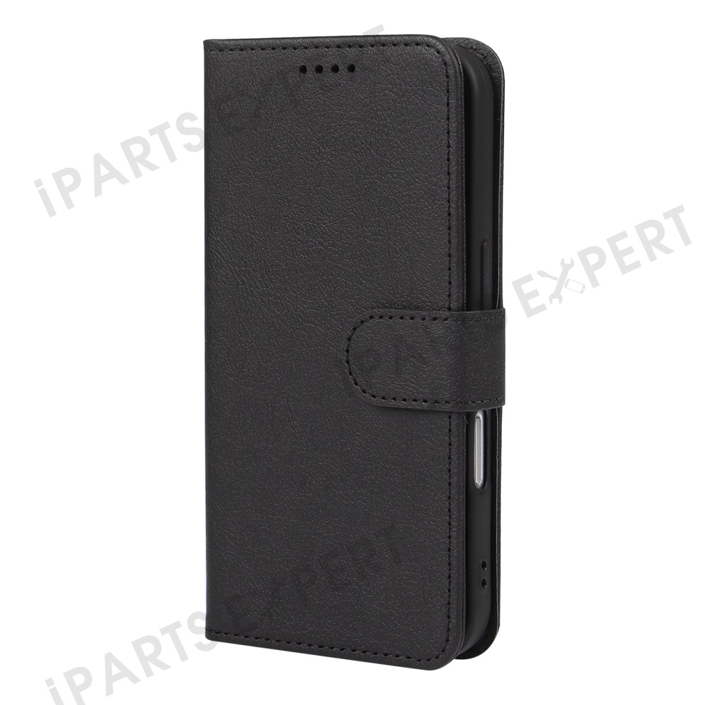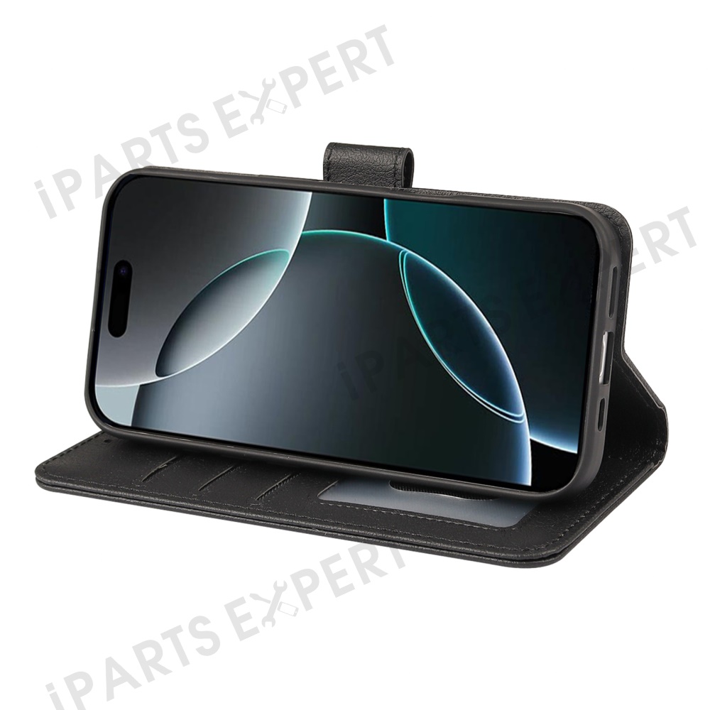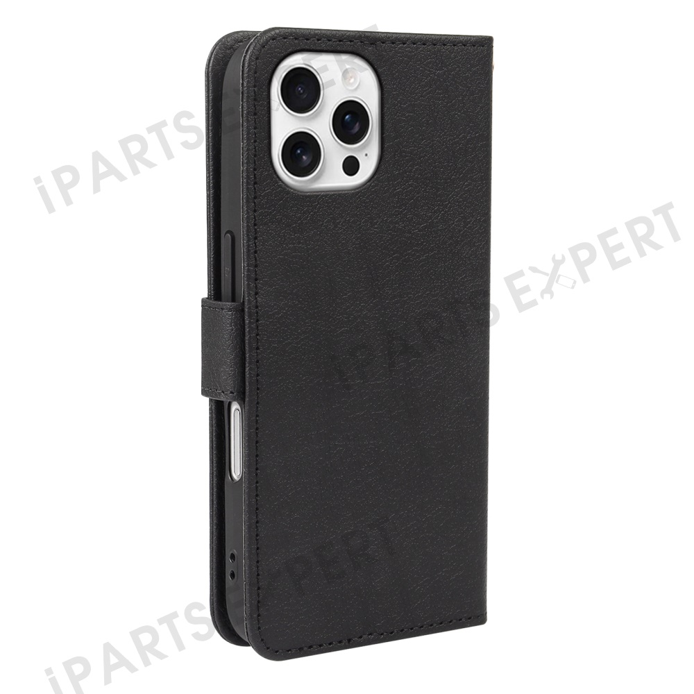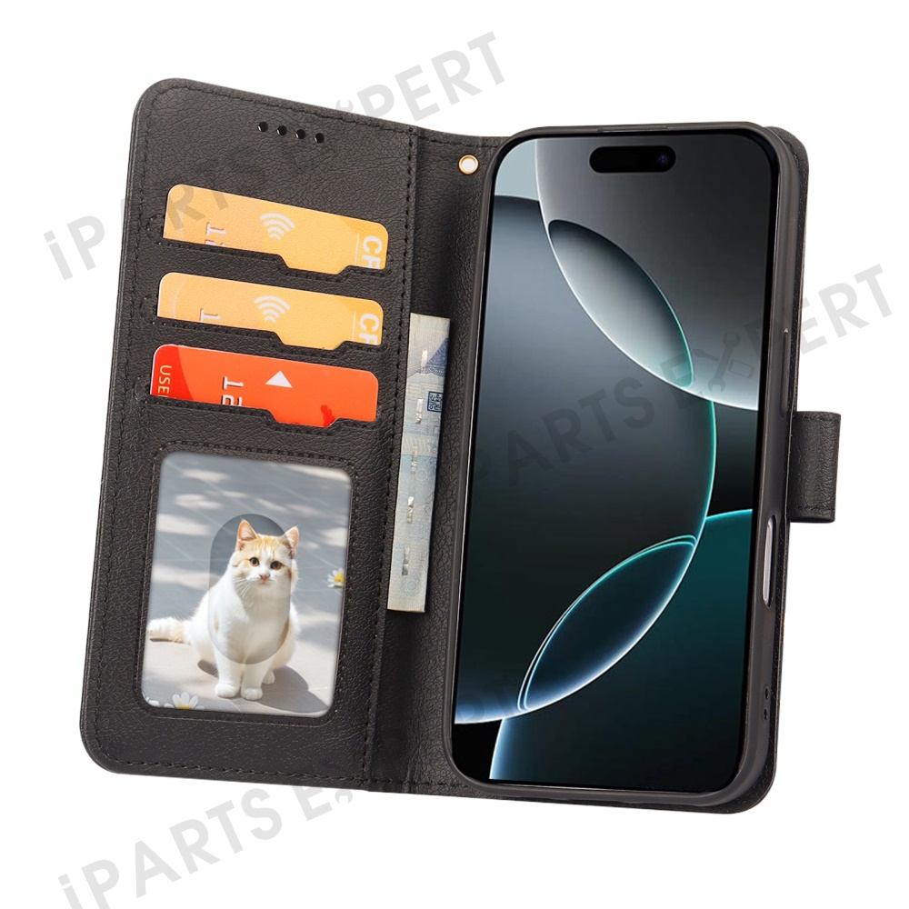 For iPhone 16 Pro Leather Case Wallet Stand Magnetic Closure Phone Cover - Black